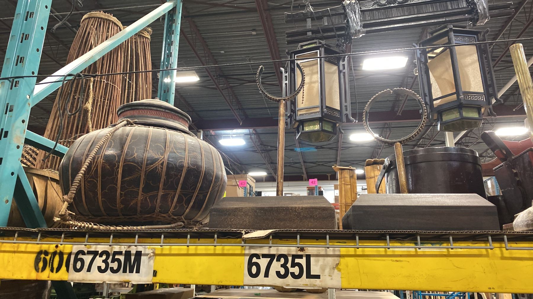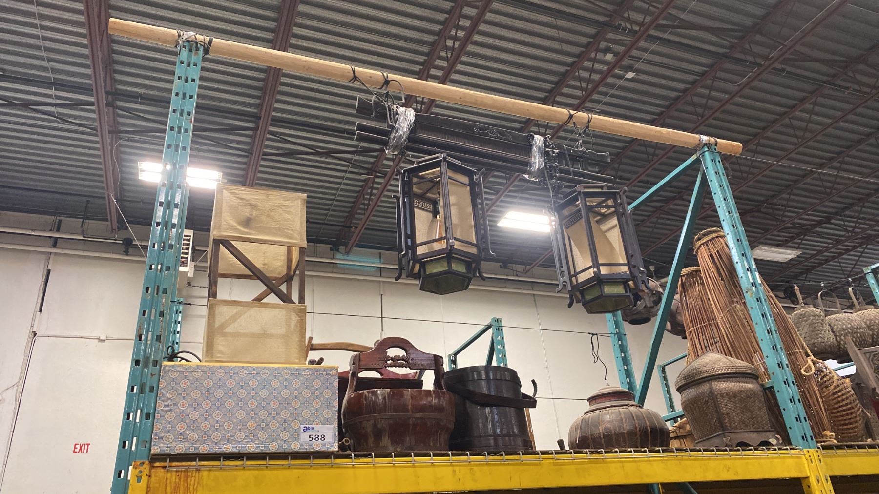 SHELF OF HANGING CHINESE LANTERNS & DECORATIVE SET DEC ITEMS