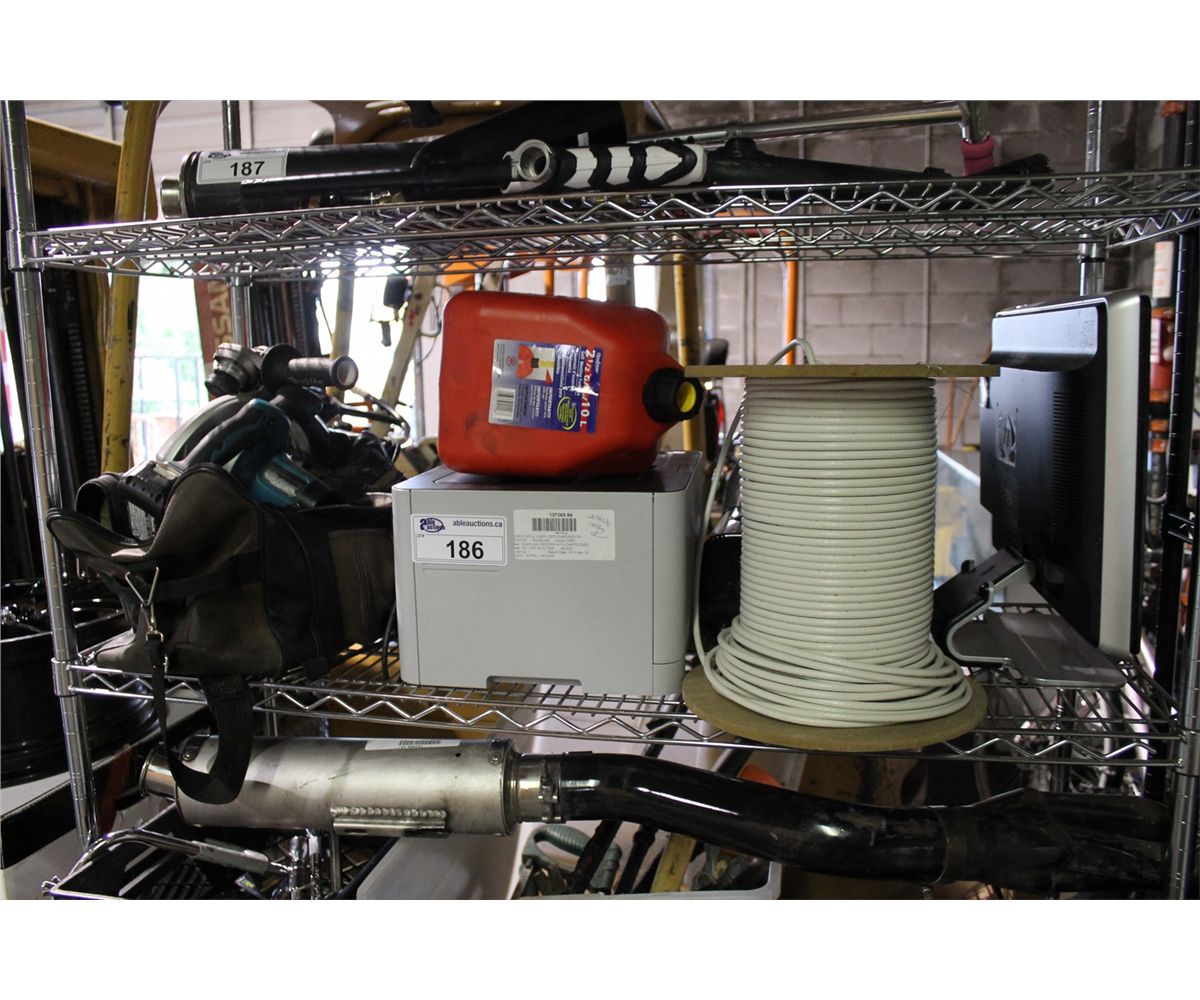 SHELF OF MAKITA CORDLESS TOOLS, CHARGER, MONITOR