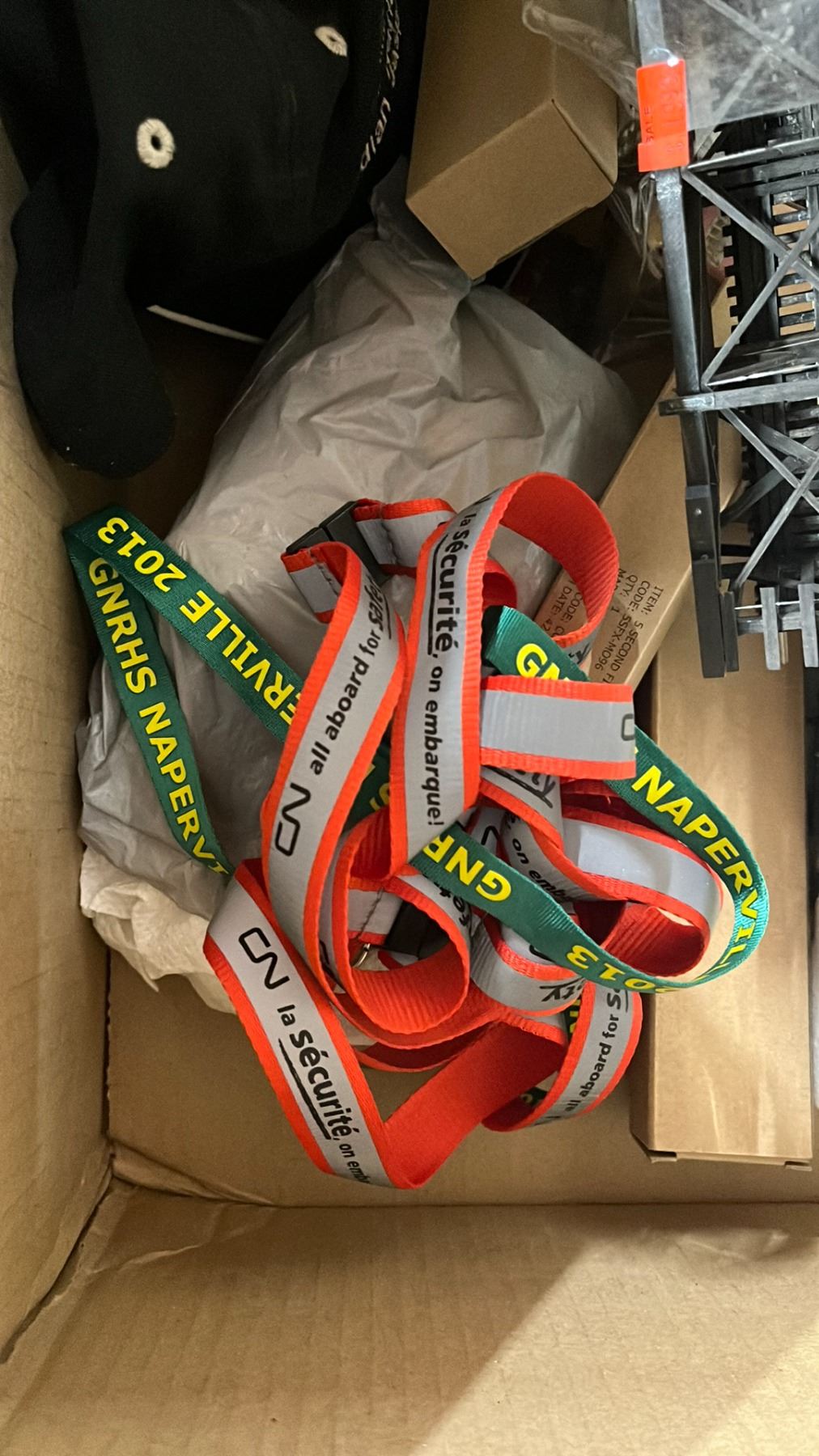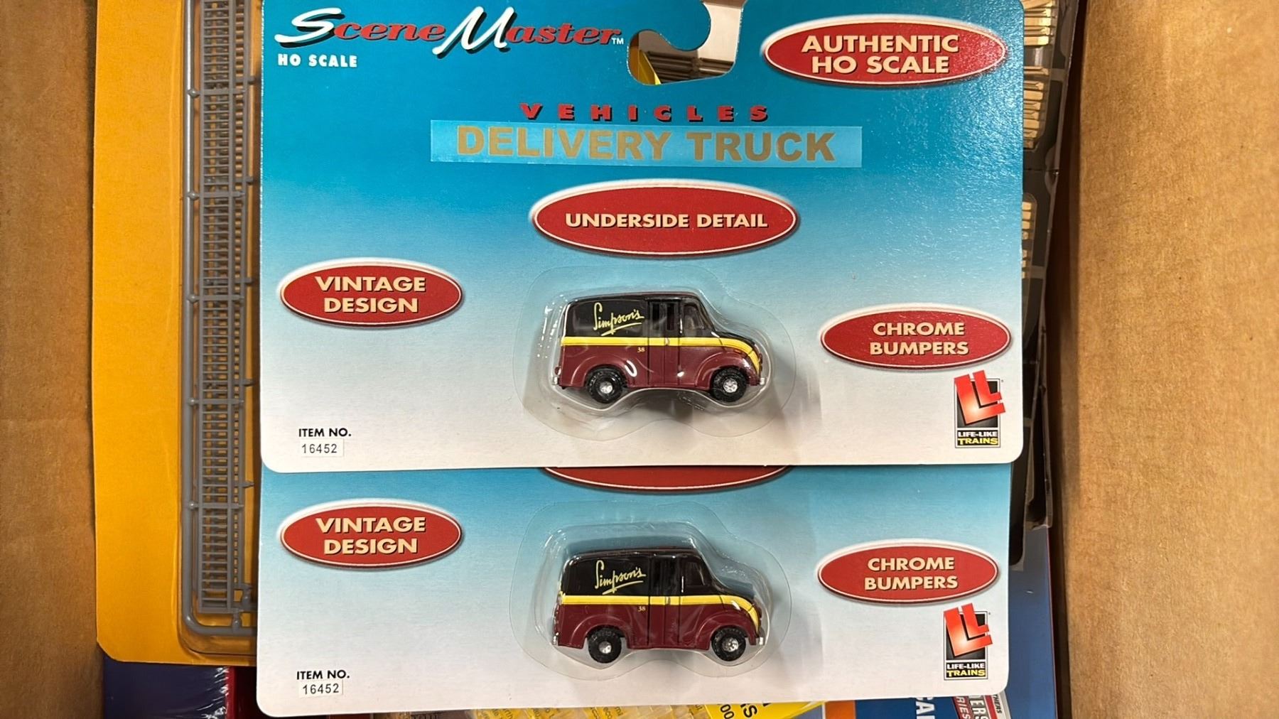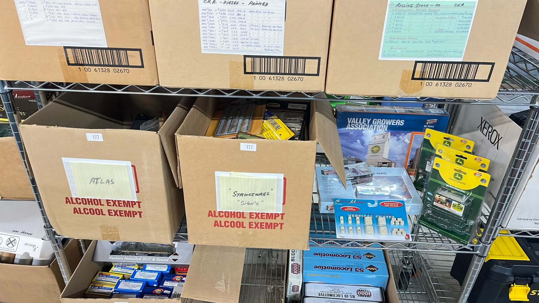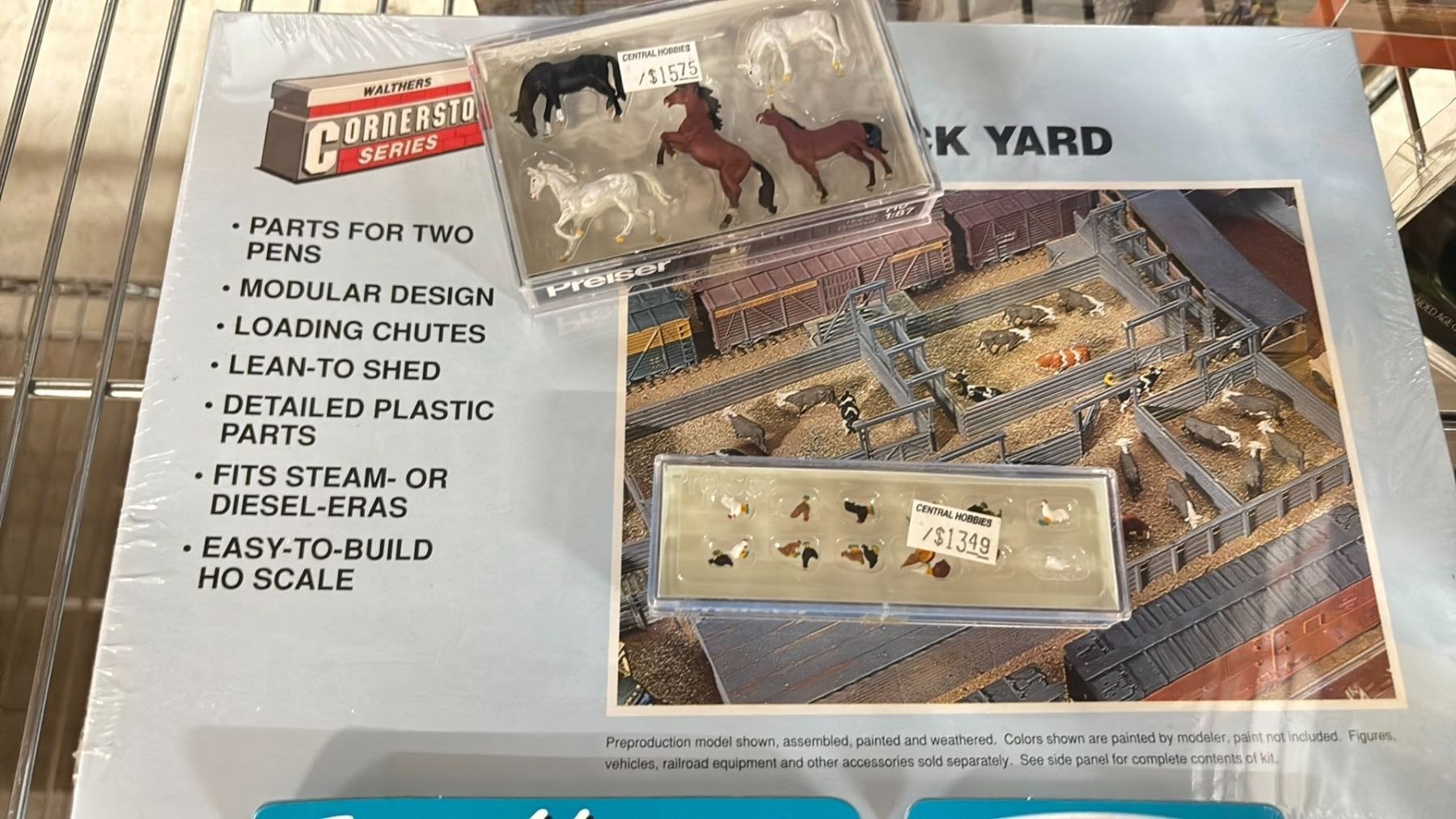 SHELF OF MODEL TRAIN SCENIC STRUCTURES, BILLBOARDS, RAIL JOINERS - FINE STANDARD & FINE SCALE, LANYARDS, HAT & MORE
