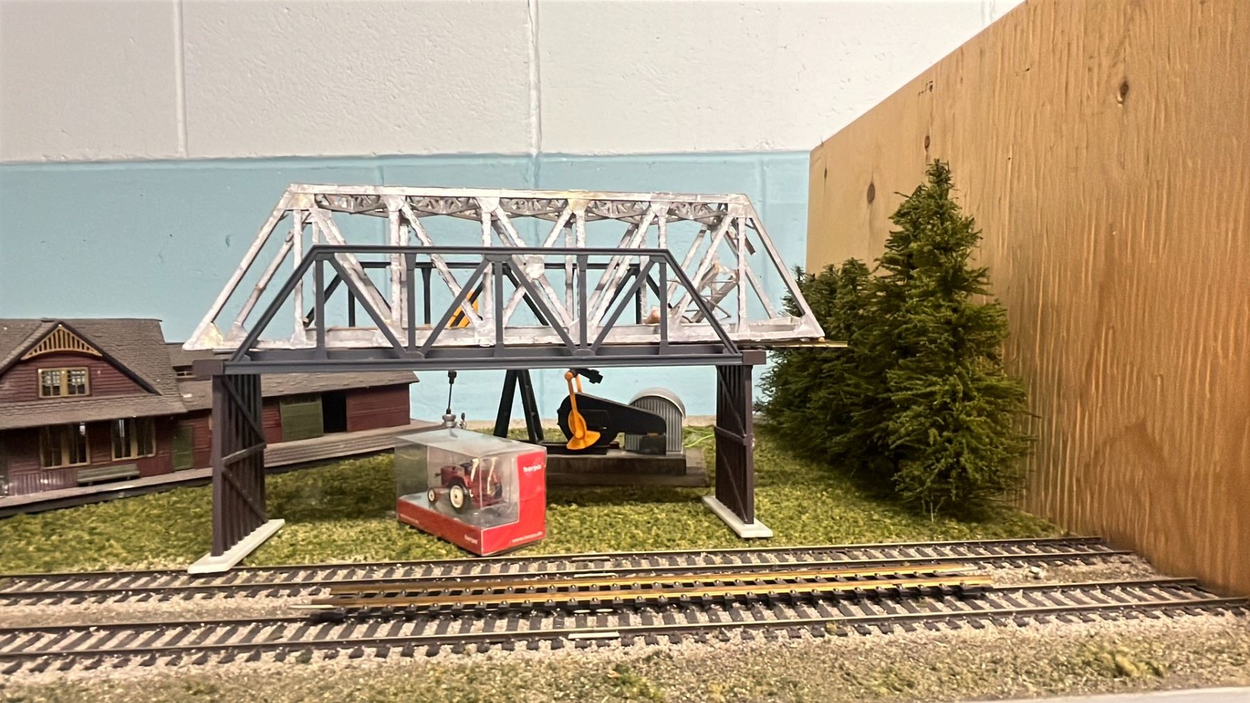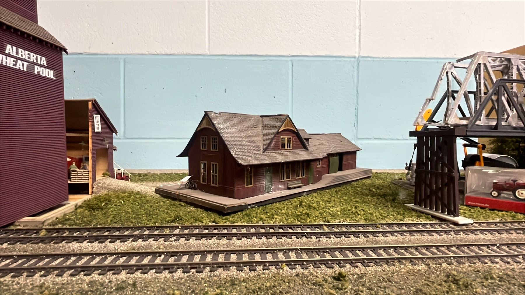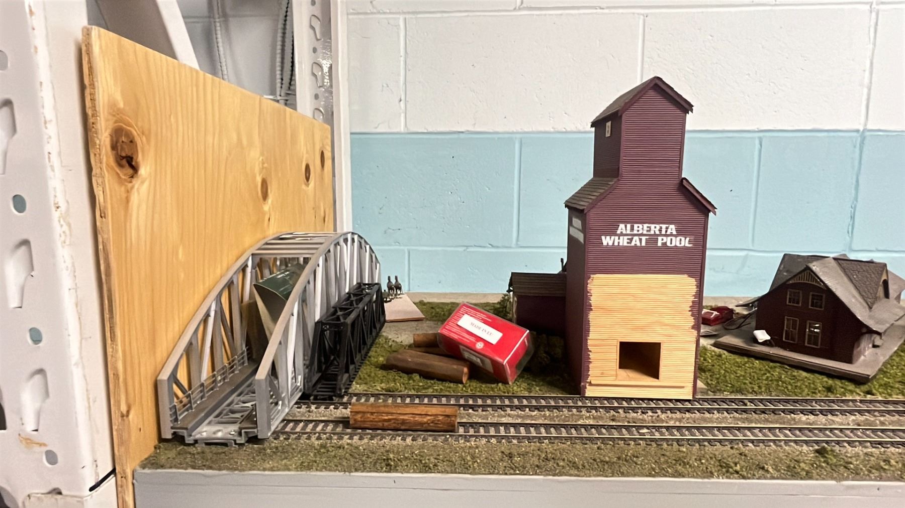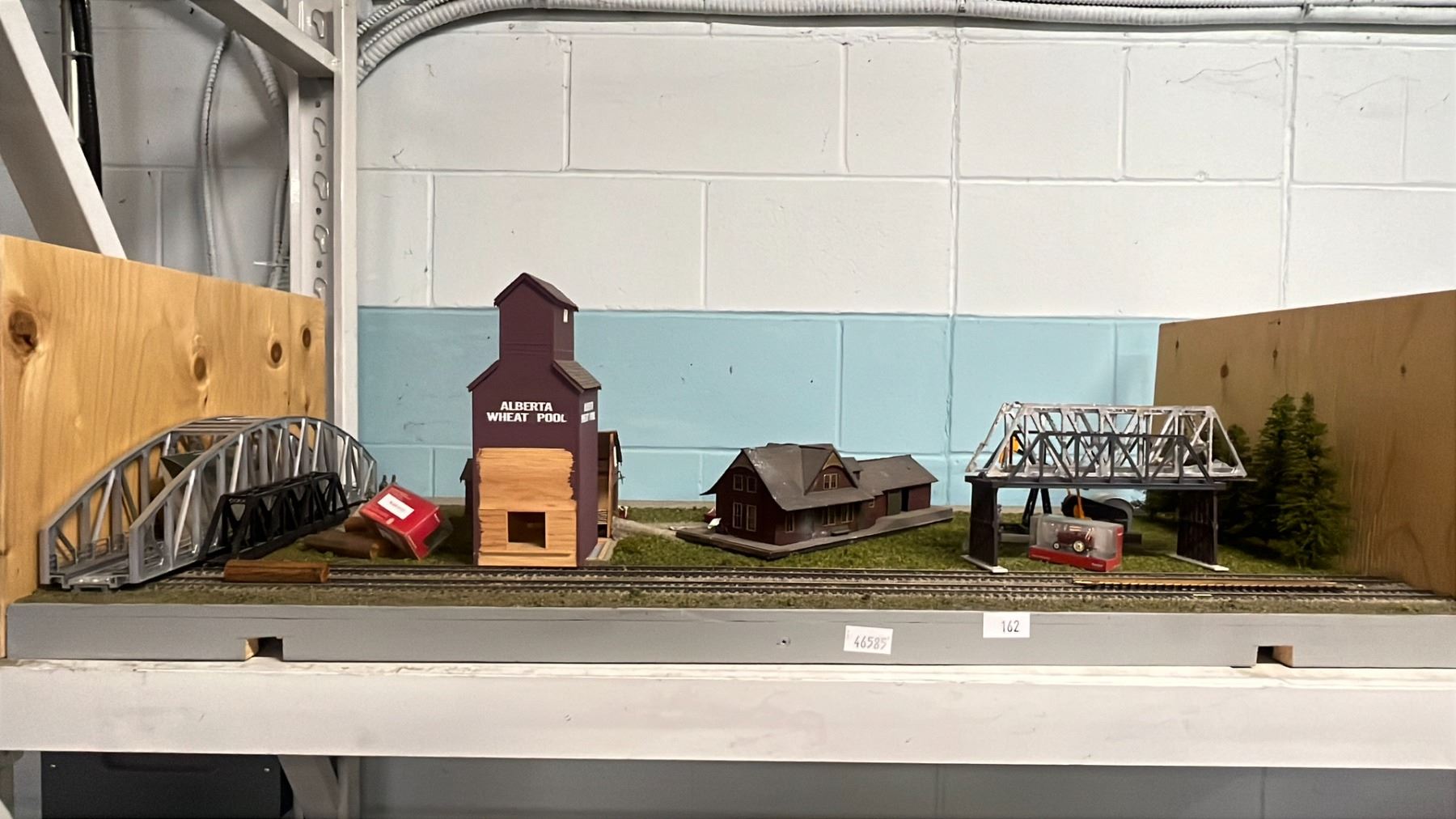 SHELF OF MODEL TRAIN SCENIC STRUCTURES