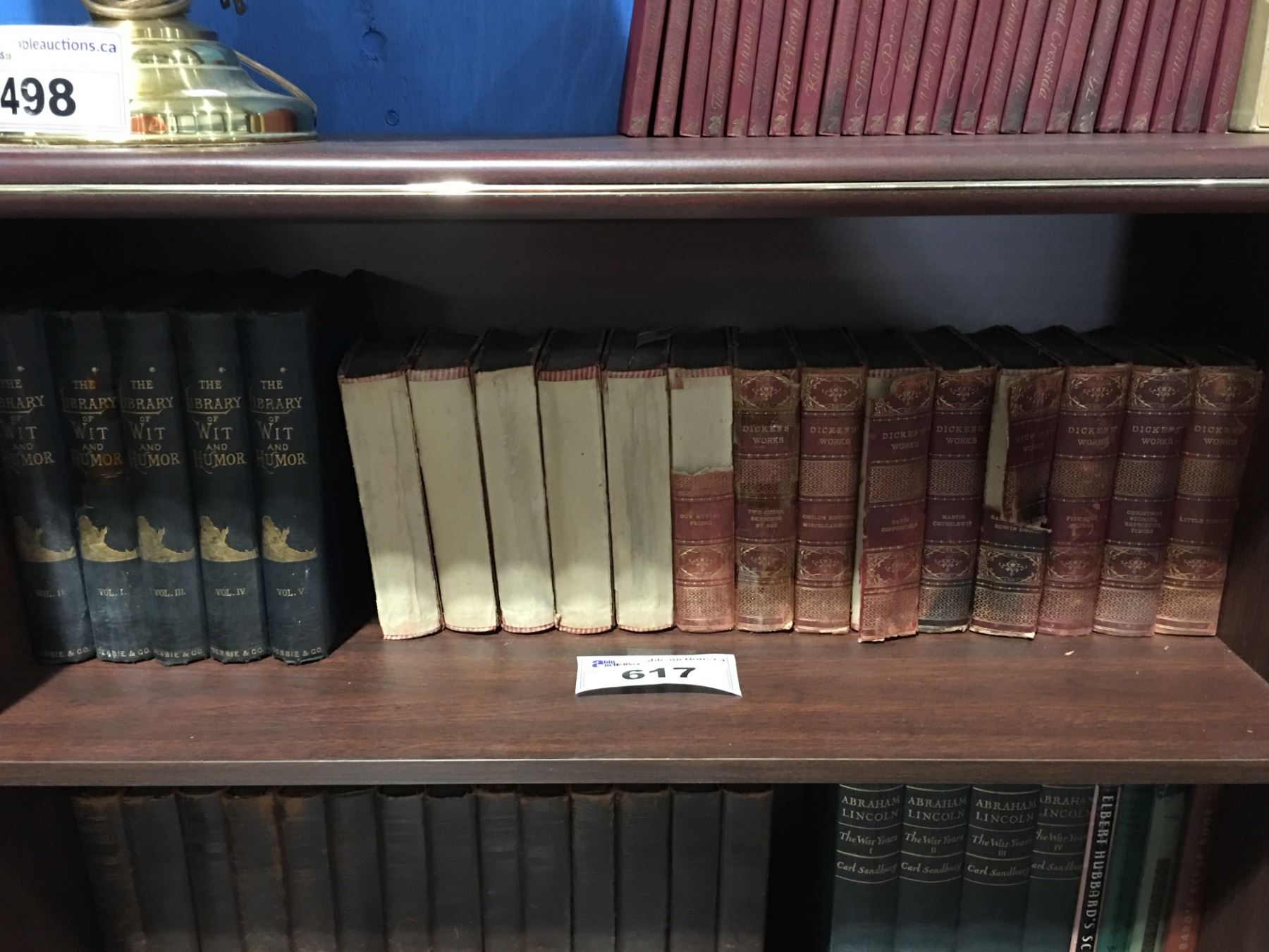 SHELF OF OLD BOOKS - DICKENS WORKS & THE LIBRARY OF WIT & HUMOR