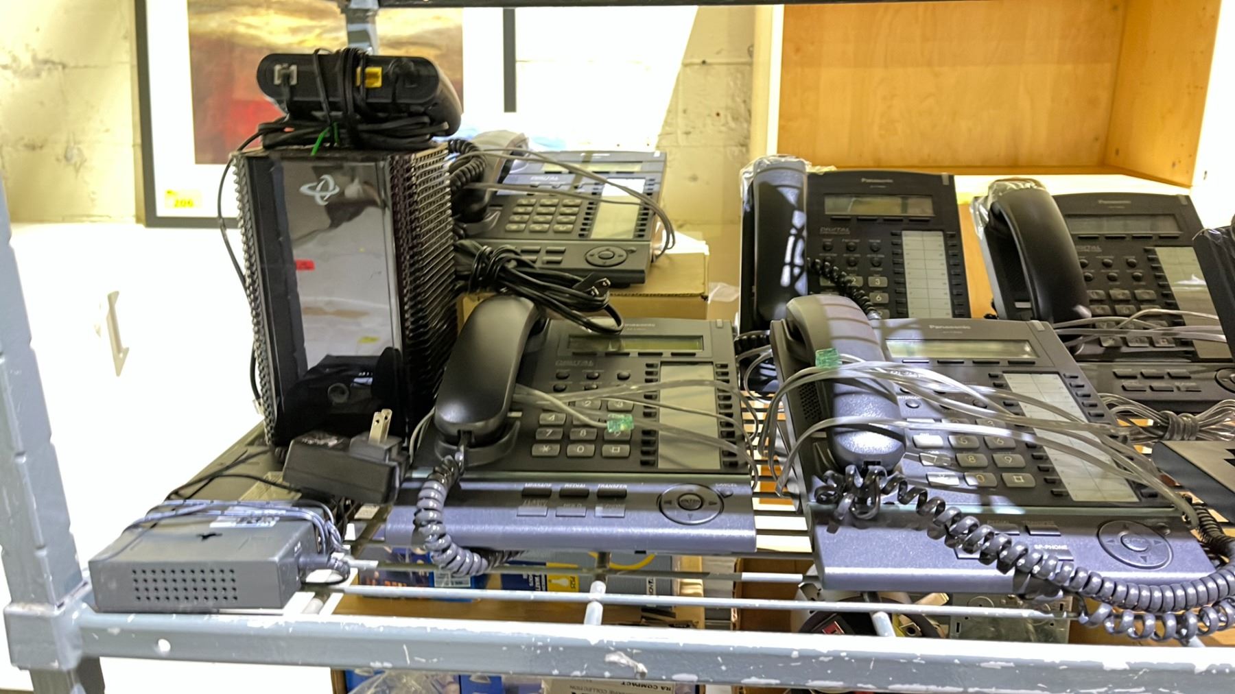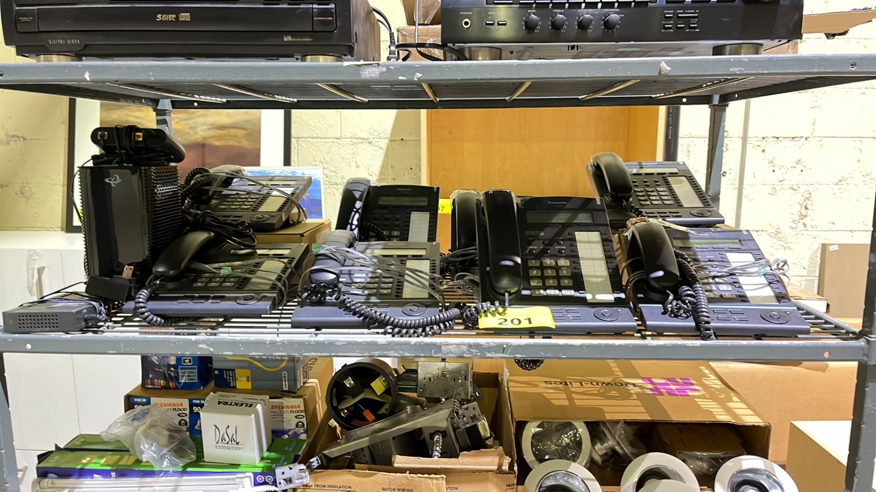 SHELF OF PANASONIC DIGITAL SUPER HYBRID OFFICE PHONE SYSTEM