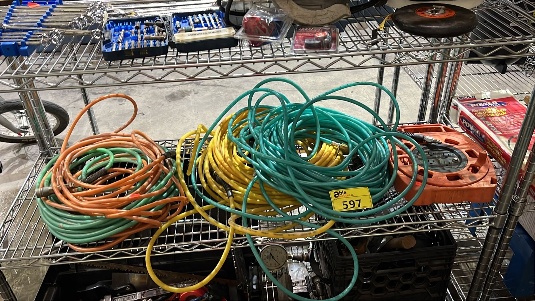SHELF OF PNEUMATIC HOSES & A EXTENSION CORD REEL