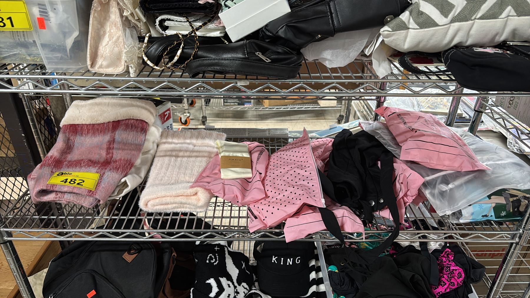 SHELF OF SCARVES, BAGS, SOCKS & MORE