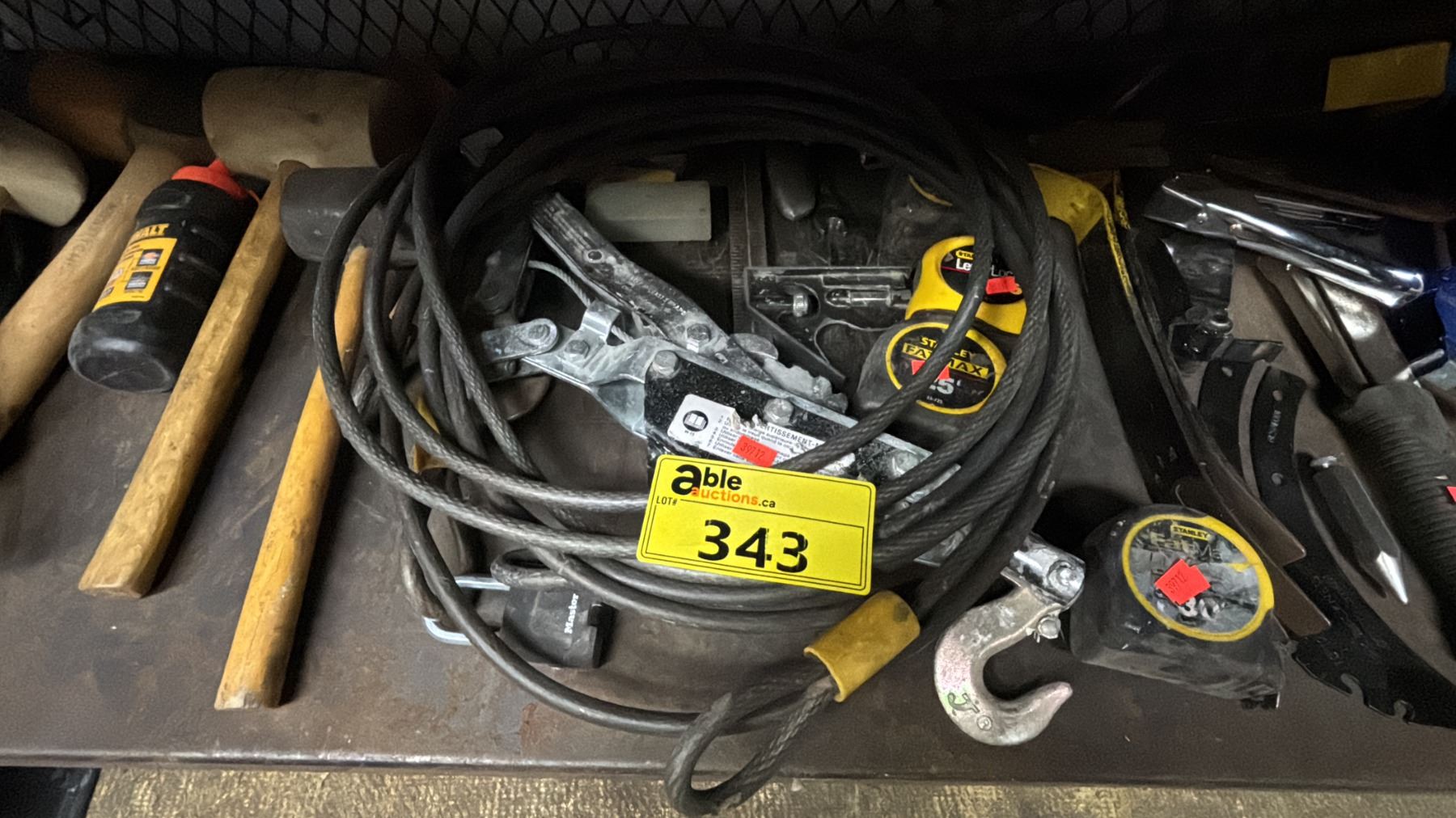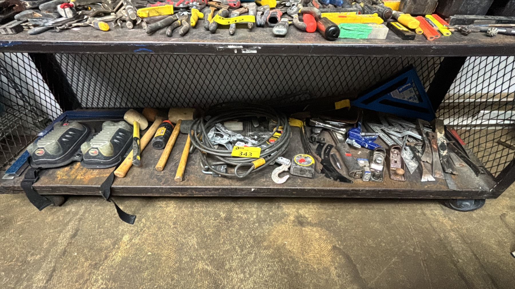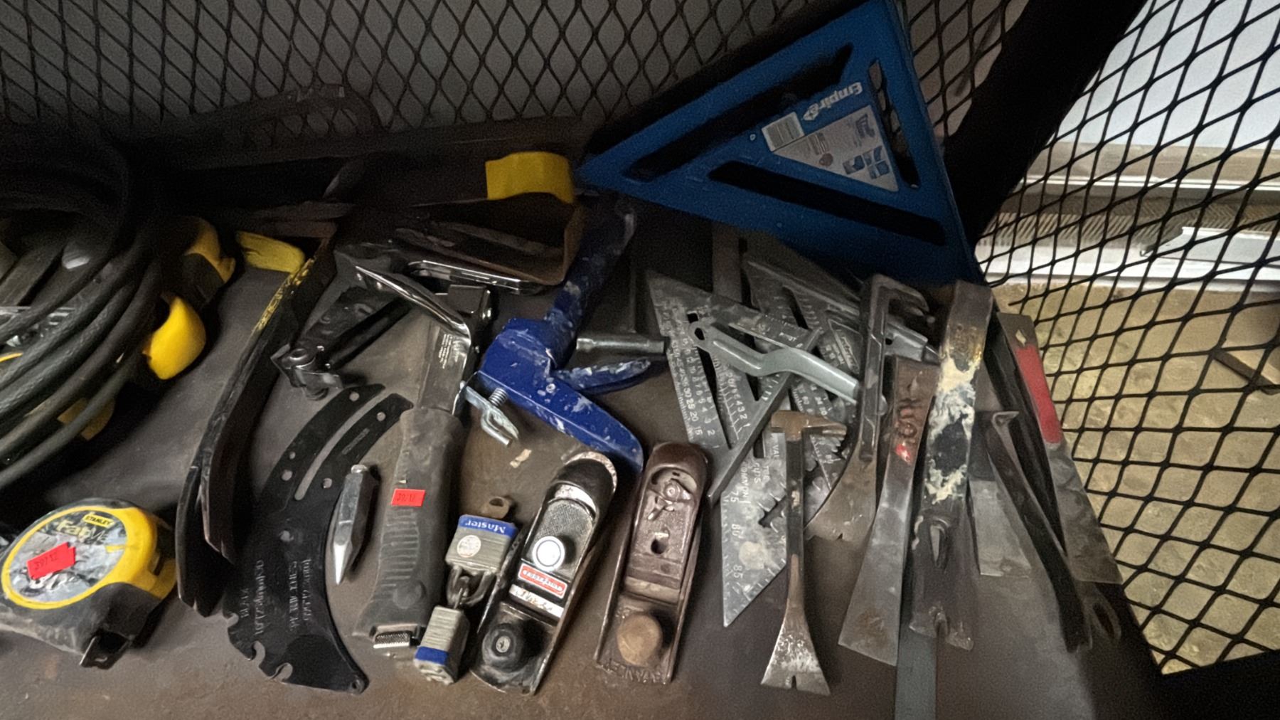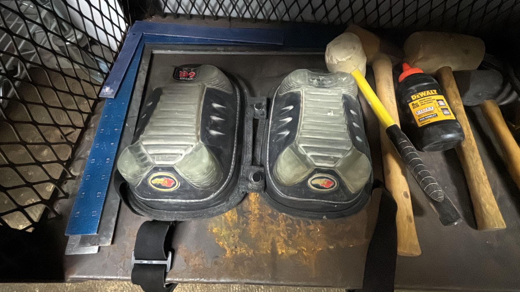 SHELF OF SMALL HAND TOOLS, KNEE PADS & CABLE