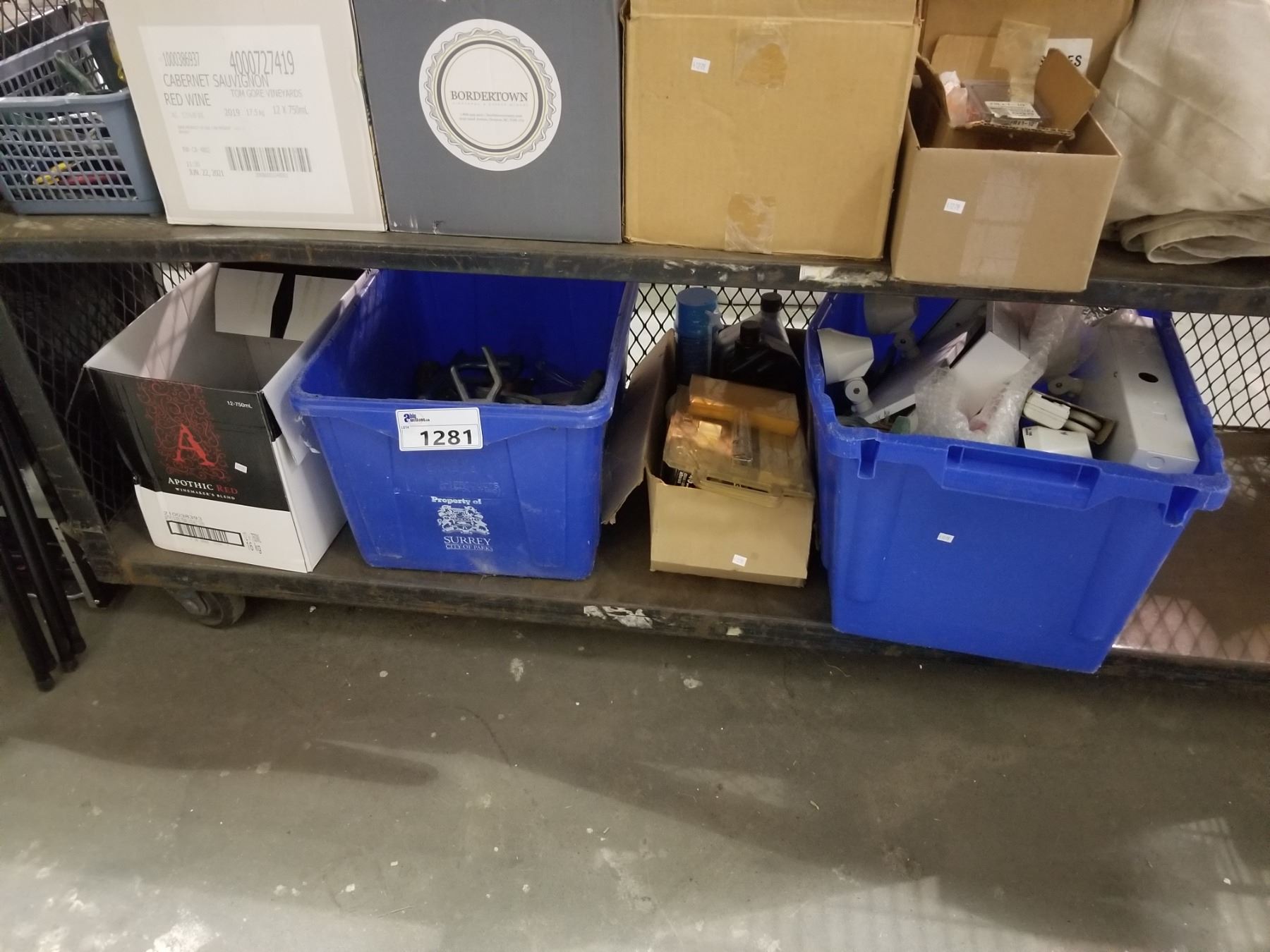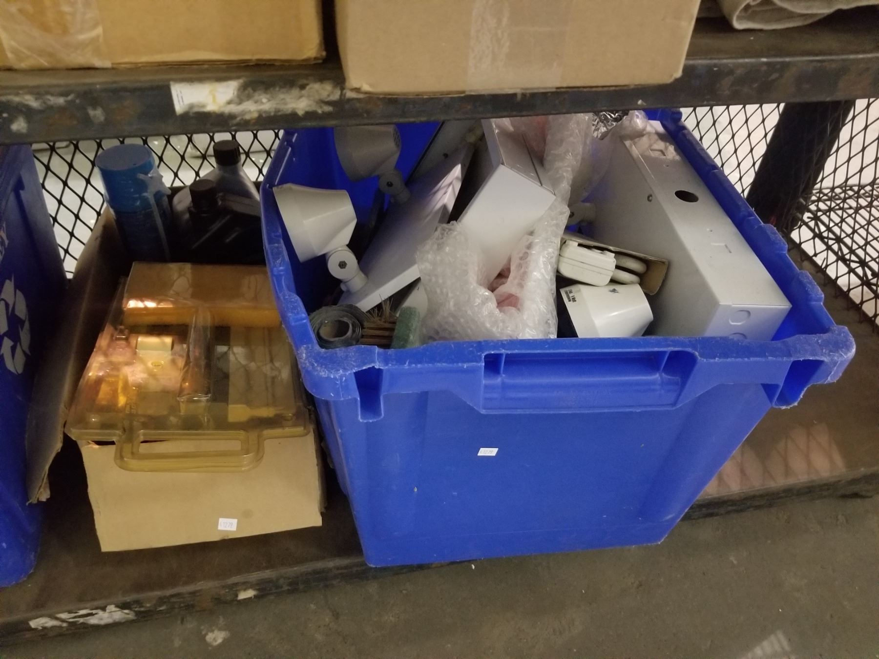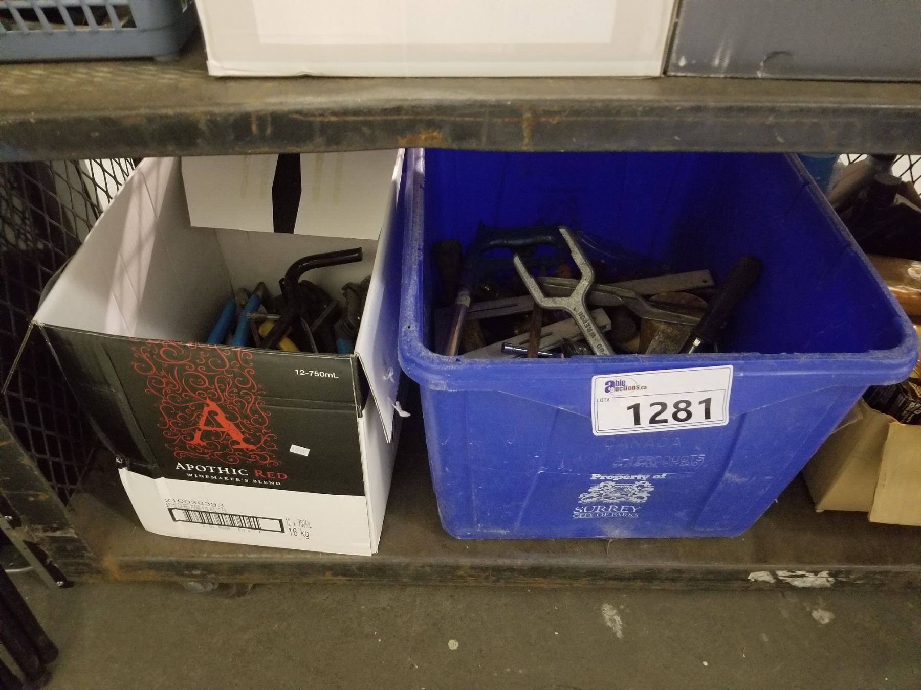 SHELF OF SMALL HAND TOOLS, LIGHTING, ETC