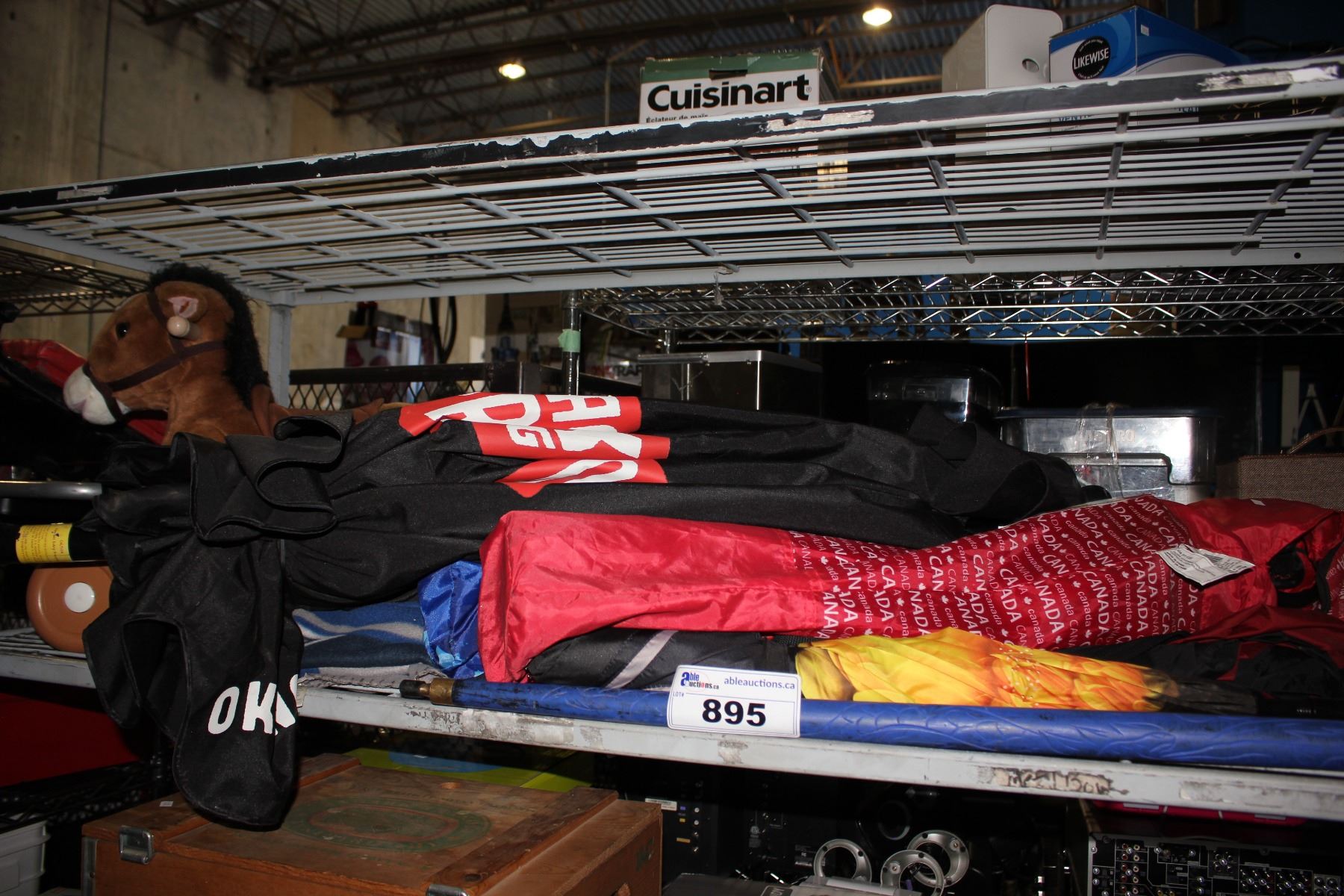 SHELF OF UMBRELLAS AND CHILDRENS TOYS