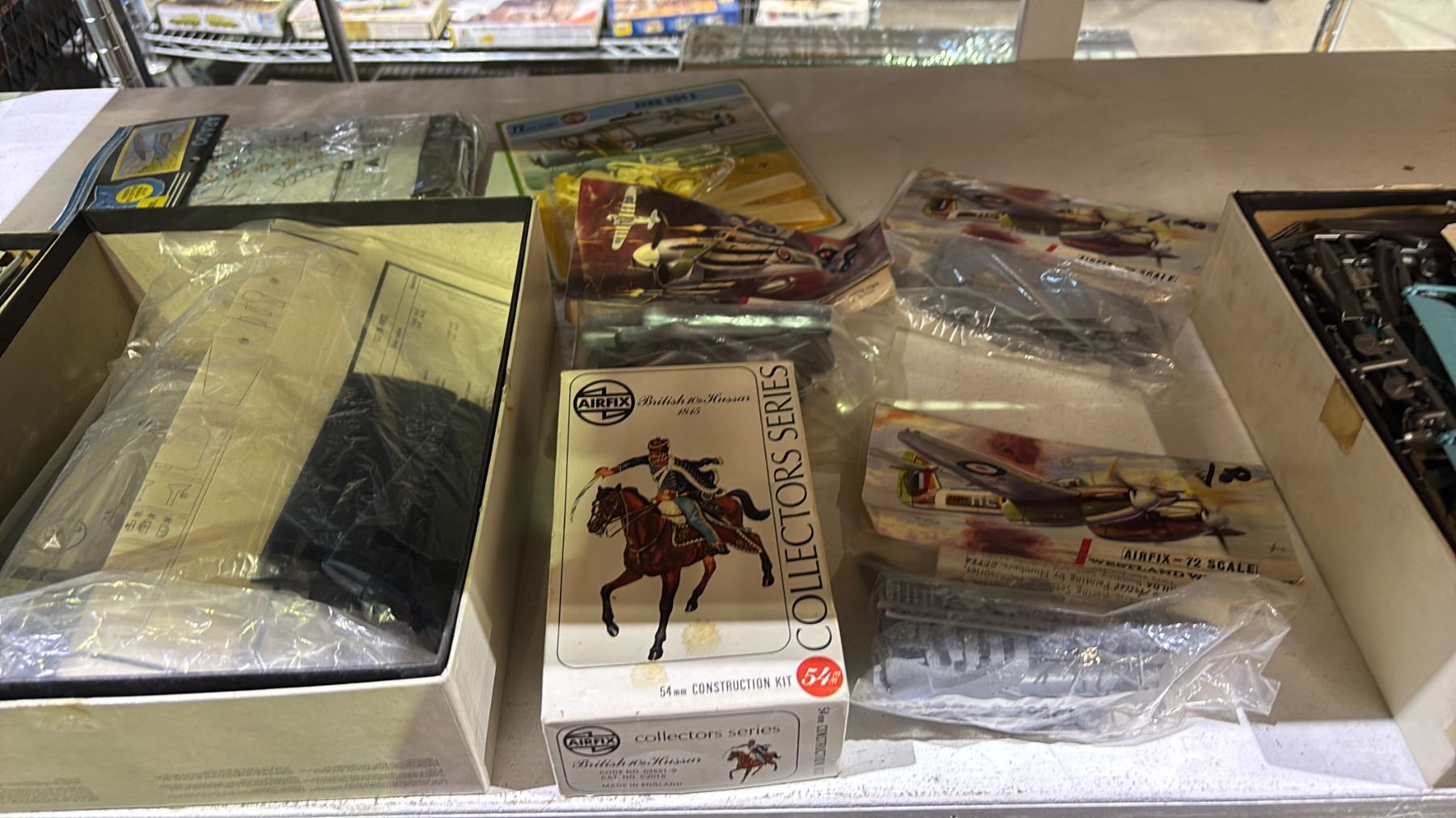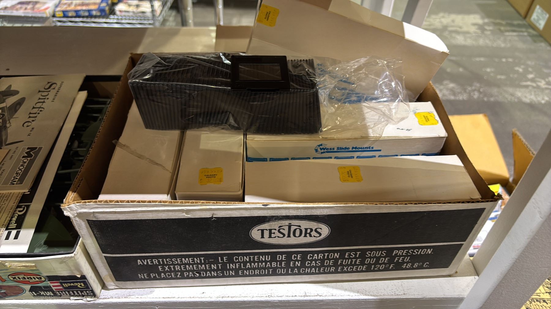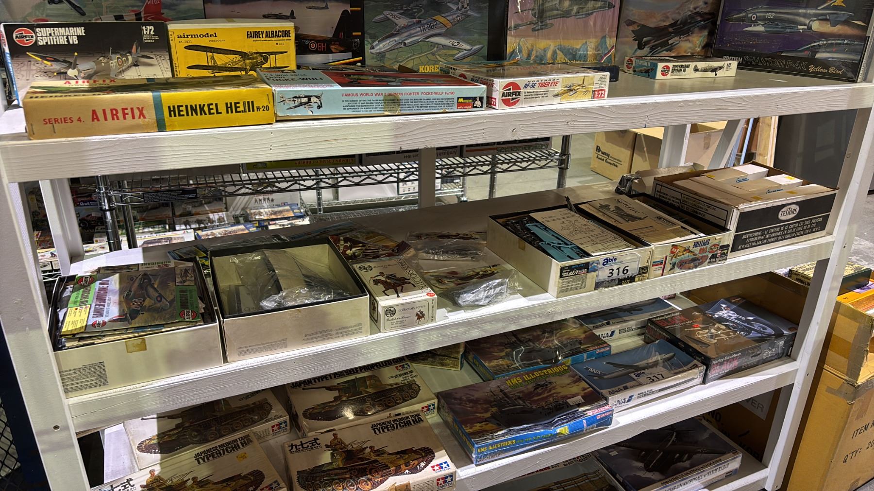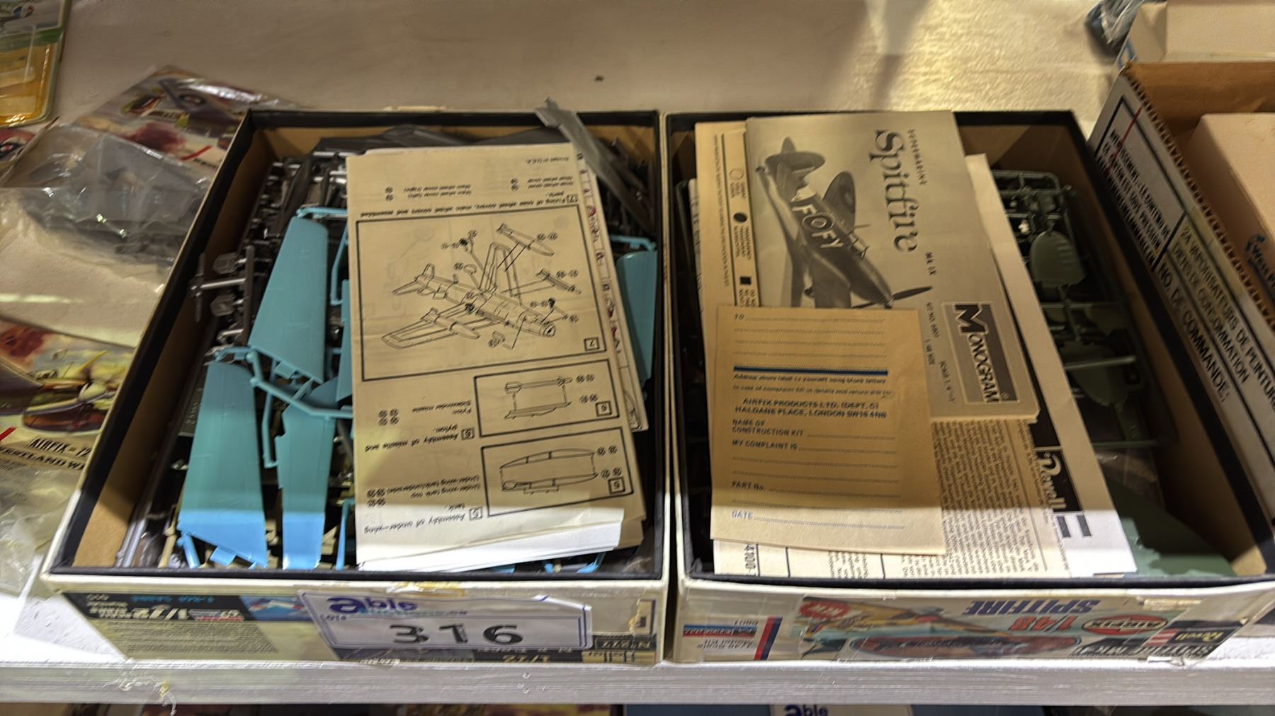 SHELF OF WESS SLIDE MOUNTS & ASSORTED AIRPLANE MODEL KITS