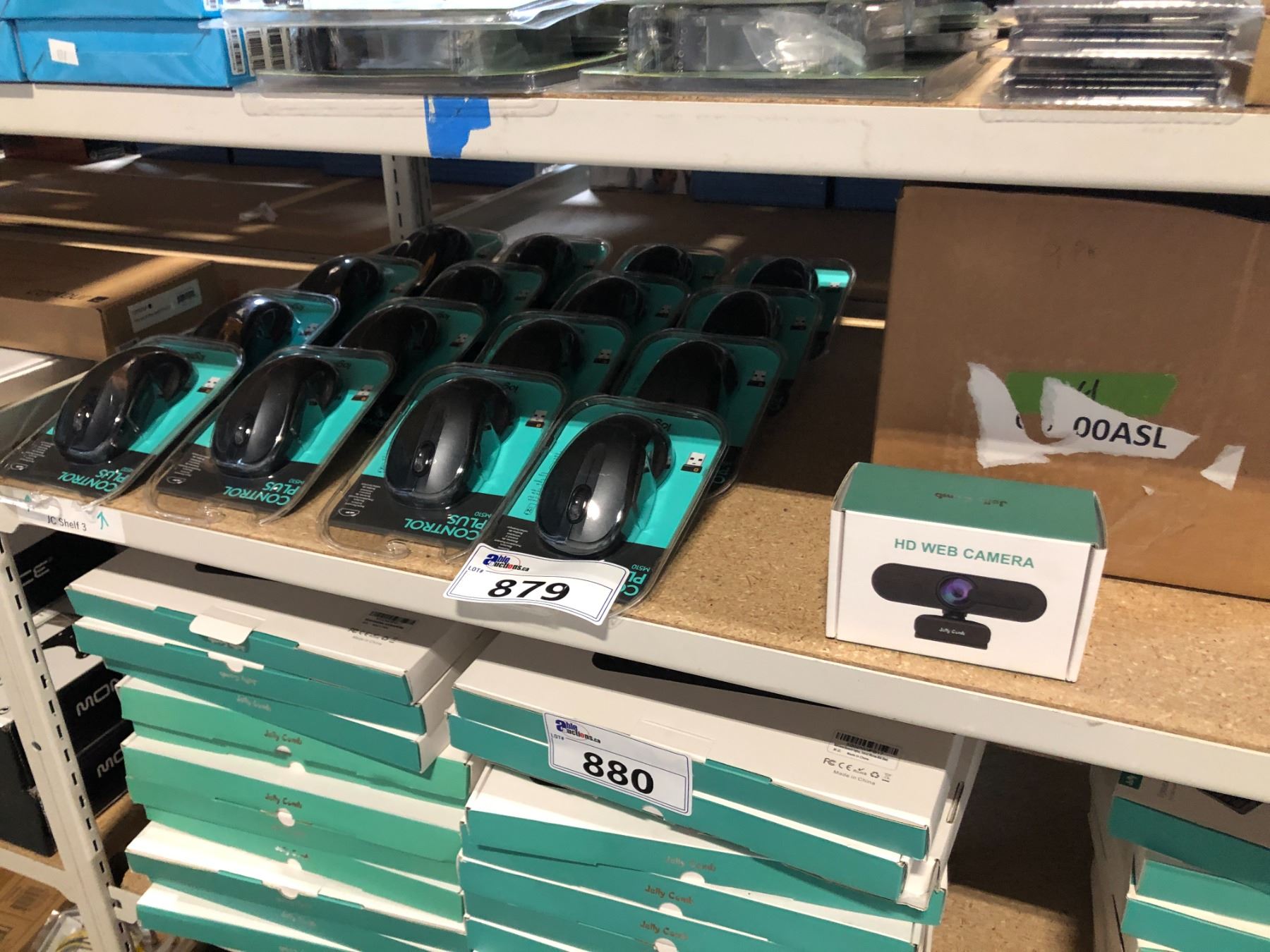 SHELF OF WIRELESS MICE & HD WEB CAMERAS