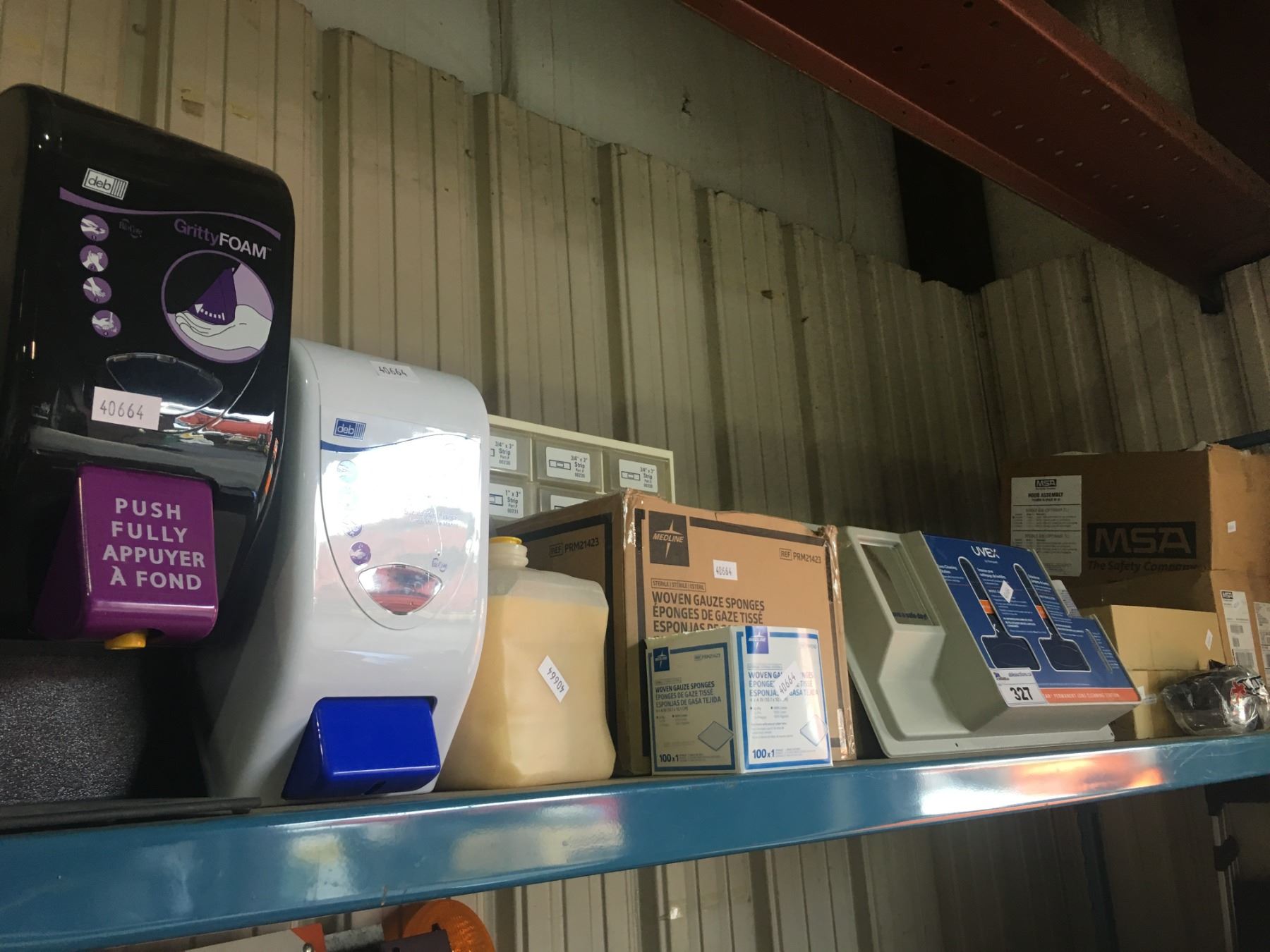 SHELF WITH LENS CLEANING STATION, SOAP DISPENSERS, SAFETY GLASSES
