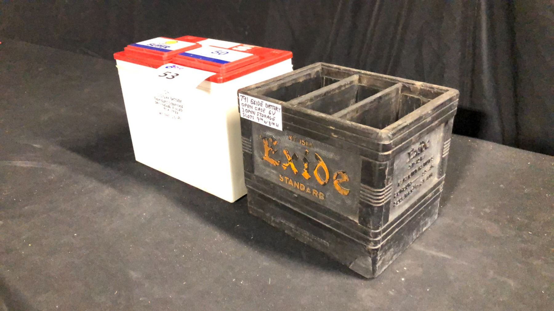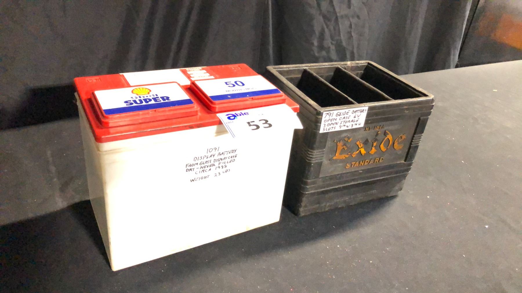 SHELL DISPLAY BATTERY (DRY) AND EXIDE 6V BATTERY OPEN CASE 9" X 8"