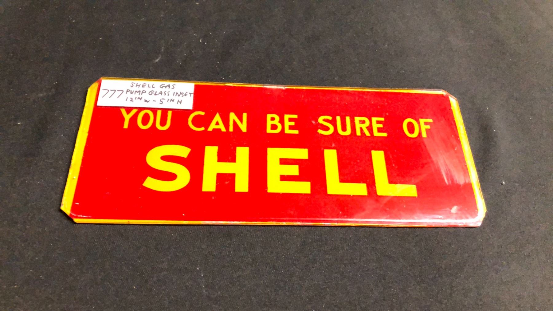 SHELL GAS PUMP GLASS INSET W12" X H5"