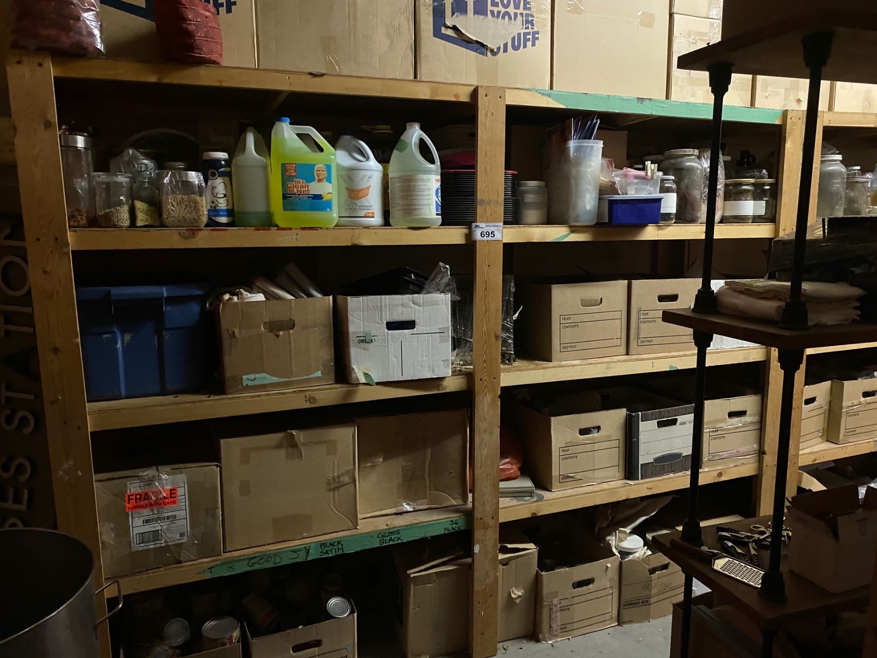 SHELVING UNIT INCLUDING MISC MOVIE SET ITEMS, INCLUDING SHELVING UNIT