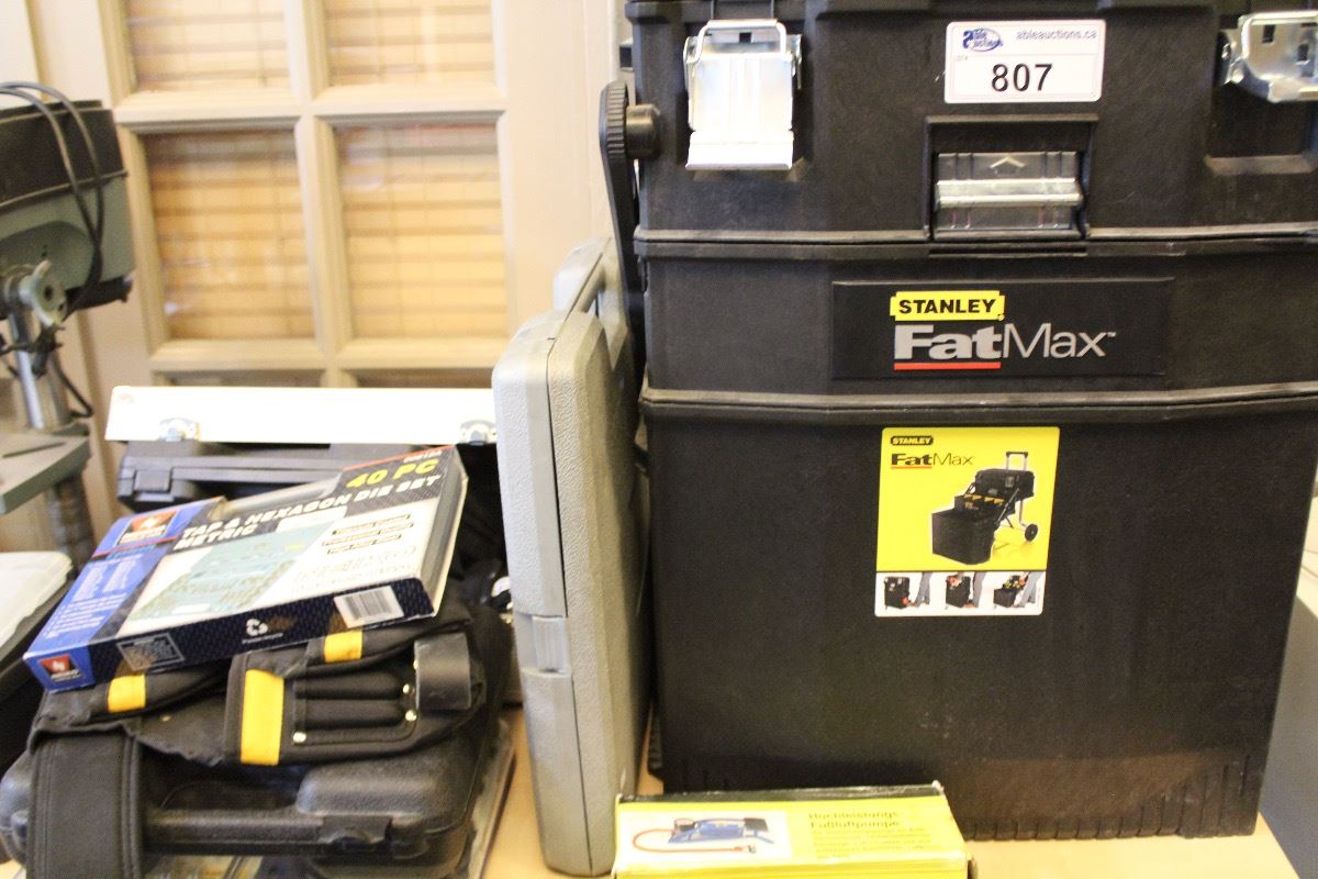 SHOP EQUIPMENT INC. CRAFTSMAN TABLE SAW, RIGID COMPRESSOR, 8'' DRILL PRESS, AND MISC LIGHTLY USED HAND TOOLS AND CASES