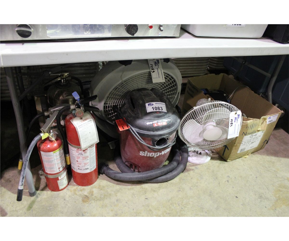 SHOP VAC, FIRE EXTINGUIHSERS, FANS AND MISC