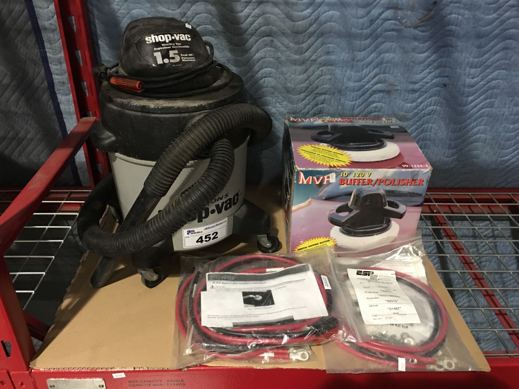 SHOP VAC & MVP BUFFER POLISHER & 3 ELECTRICAL BATTERY CABLES
