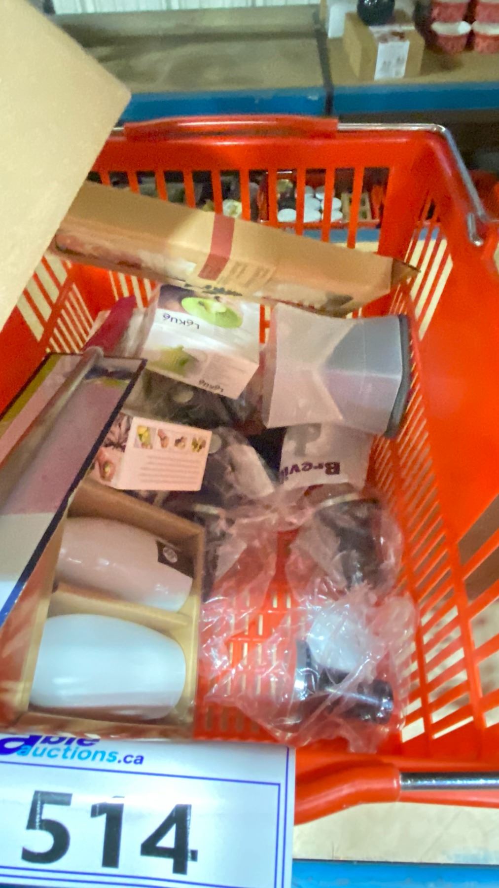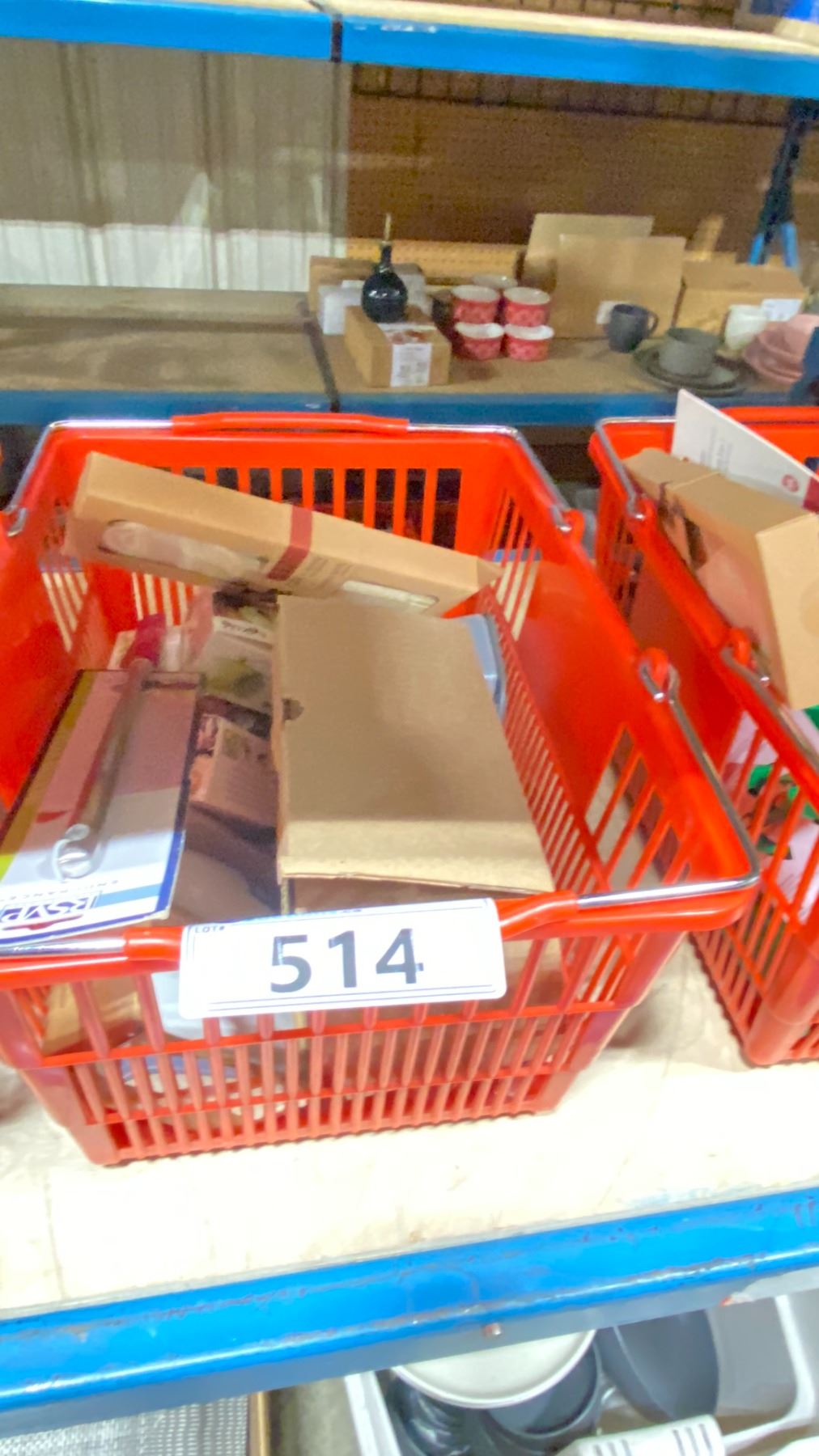 SHOPPING BASKET OF ASSORTED KITCHEN WARE; SERVING SPOONS, TARTLET PANS AND MORE