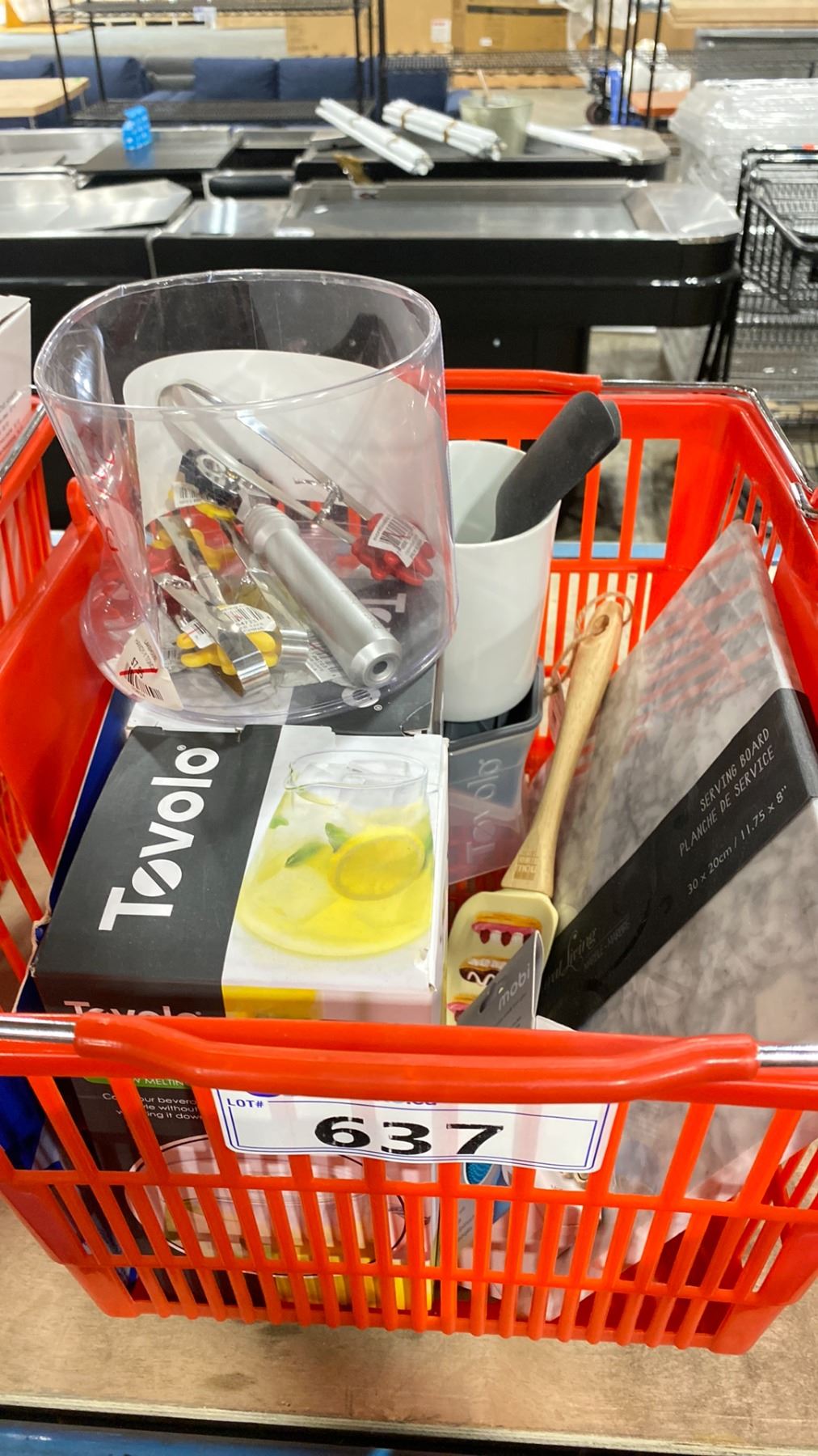 SHOPPING BASKET WITH ASSORTED MINI TONGS, TOVOLO COLOSSAL CUBE ICE MOLD, SERVING BOARD AND MORE