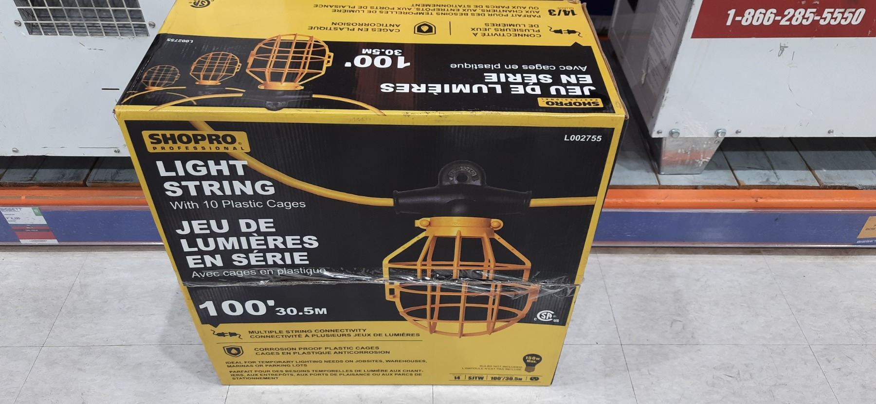 SHOPRO 100' INDUSTRIAL ELECTRIC JOB SITE LIGHT STRING WITH 10 PLASTIC CAGES