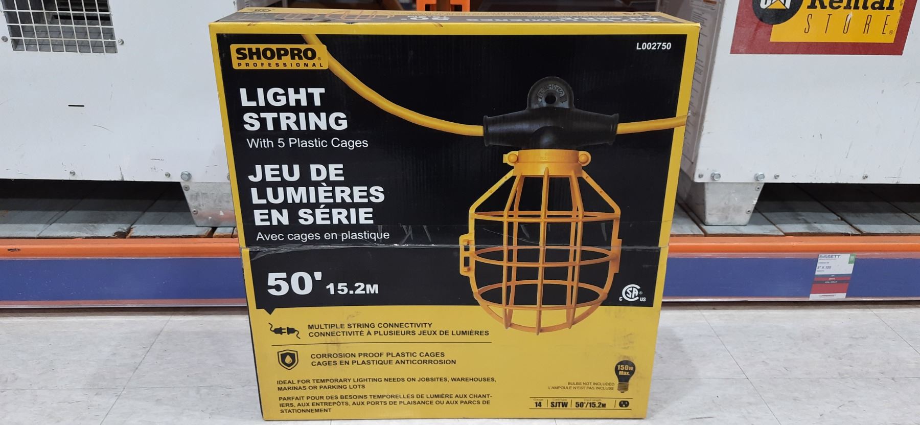 SHOPRO 50' INDUSTRIAL ELECTRIC JOB SITE LIGHT STRING WITH 5 PLASTIC CAGES