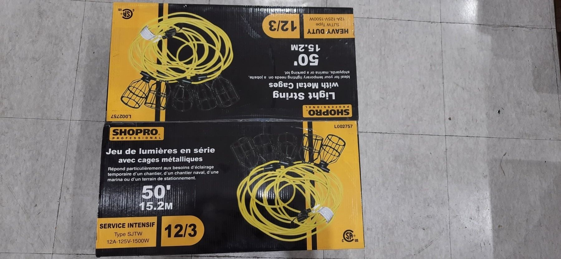 SHOPRO 50' INDUSTRIAL ELECTRIC JOB SITE LIGHT STRING WITH METAL CAGES