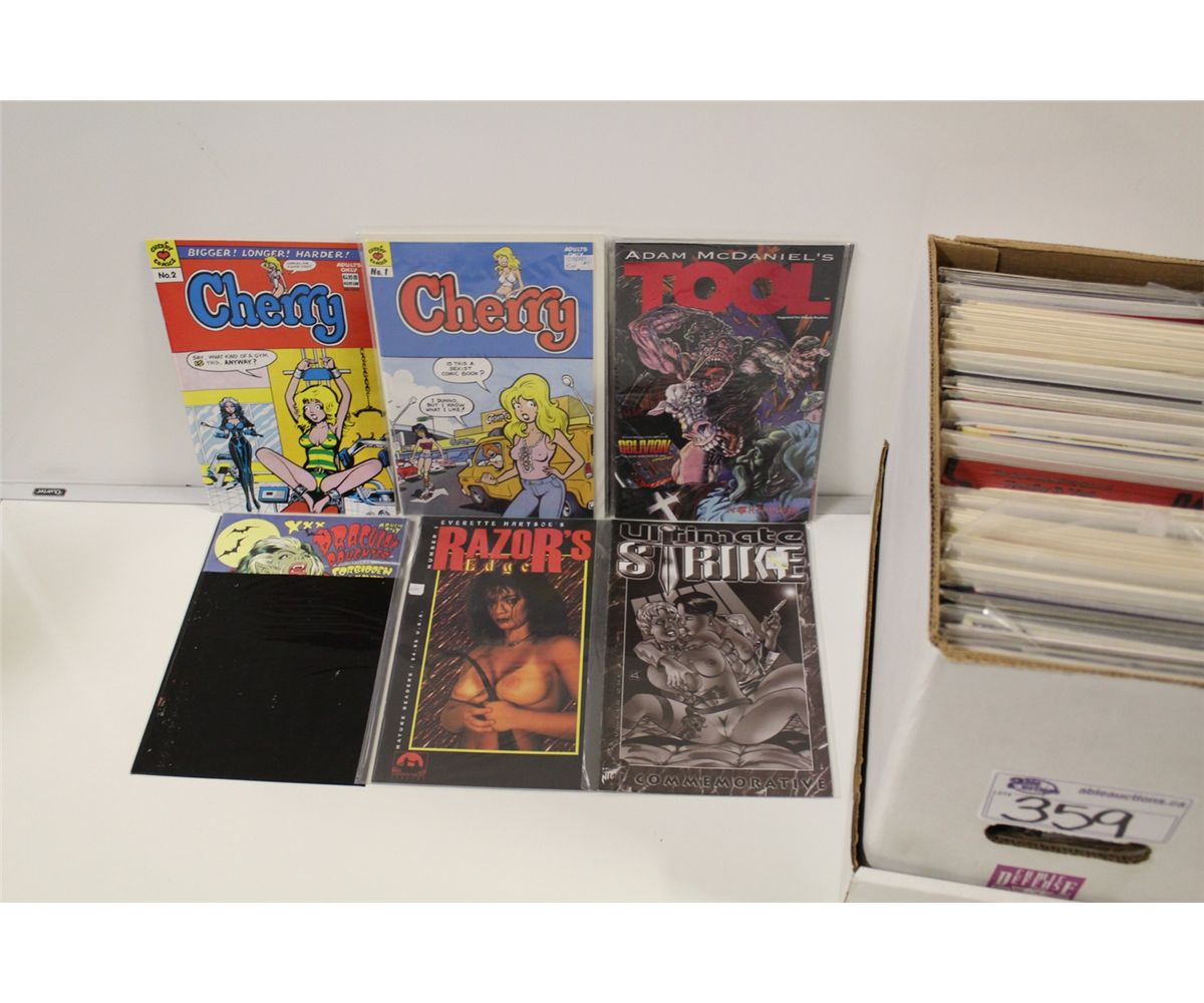 SHORT BOX OF ASSORTED ADULT TITLE COMICS 18+. INCLUDES: CHERRY AND MORE