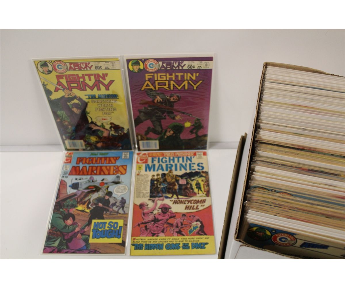 SHORT BOX OF BRONZE CHARLTON WAR TITLES. INCLUDES: ATTACK, BATTLEFIELD ACTION, FIGHTIN MARINES, FIGHTIN ARMY AND MORE!