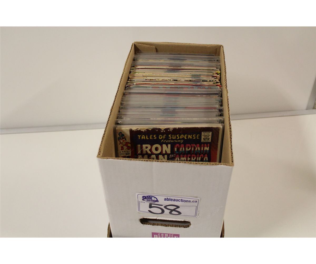 SHORT BOX OF CAPTAIN AMERICA #1-50, 345-454 IN HIGH GRADE AND TALES OF SUSPENSE #64 AND 75 IN LOW GRADE.