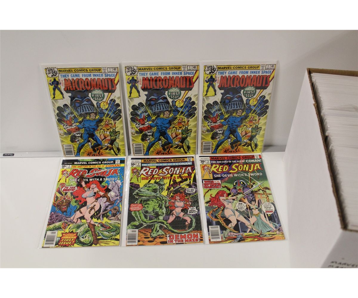 SHORT BOX OF DC & MARVEL TITLES 'M-S': MICRONAUTS, RED SONJA, SPECTACULAR SPIDER-MAN AND MORE! MIXED GRADES, MANY SHARP COPIES AND #1'S