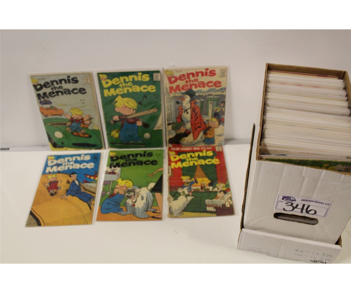 SHORT BOX OF FUNNIES INCLUDING 10, 12 AND 15 CENT DENNIS THE MENACE, SAD SACK AND MORE!