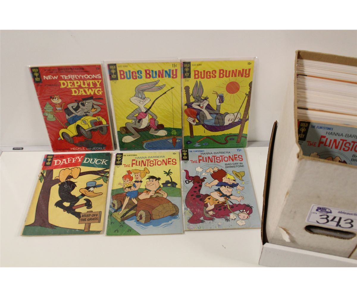 SHORT BOX OF GOLD KEY HUMOUR TITLES. MANY 12 AND 15 CENT COVERS. INCLUDES: BUGS BUNNY, FLINTSTONES, AND MORE!