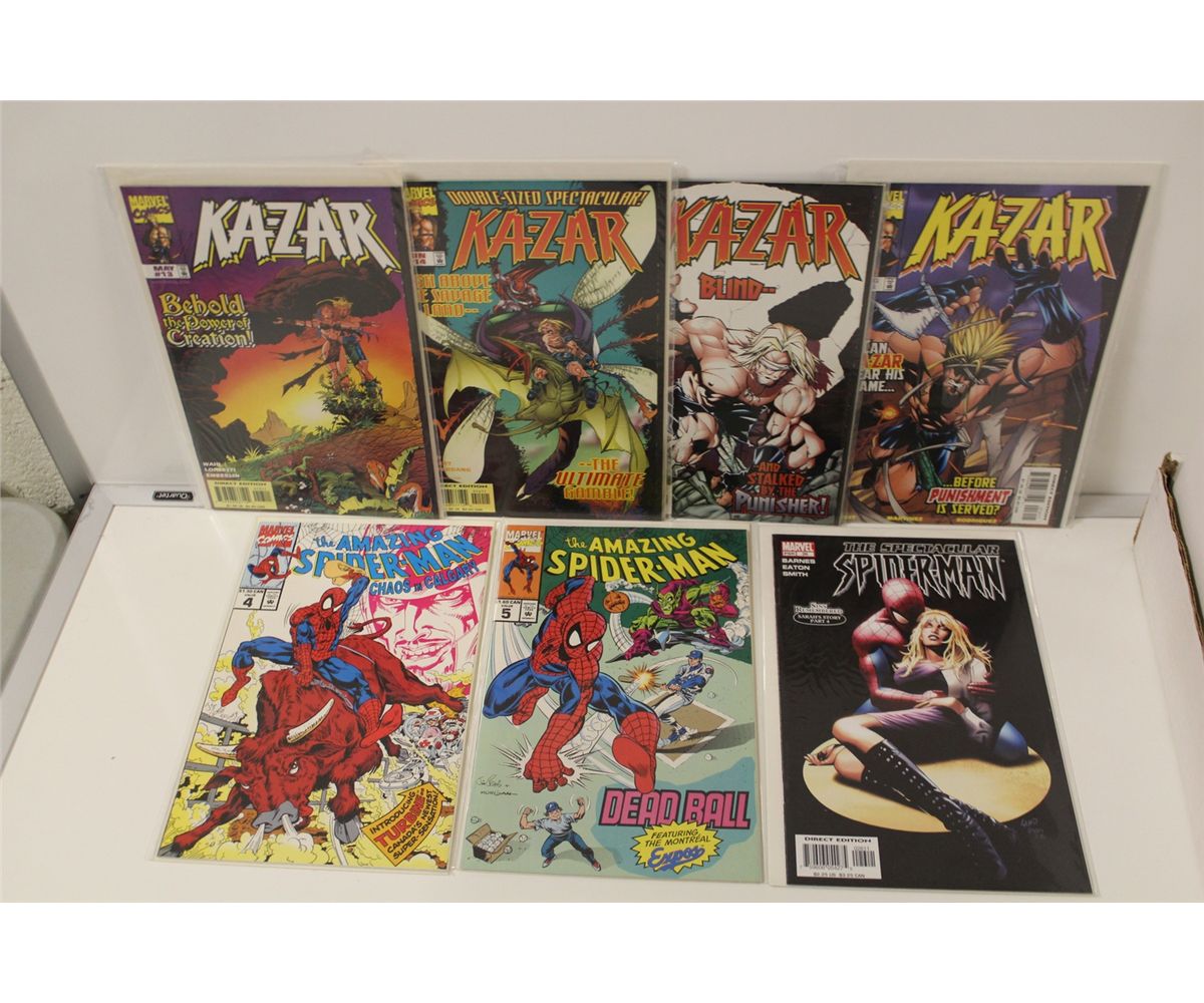 SHORT BOX OF MIXED TITLES & RUNS- INCLUDES SPIDEY BOOKS, BATMAN: THE CULT, SPAWN THE IMPALER, SPAWN BLOOD FEUD 1-4, KAZAR AND MORE!