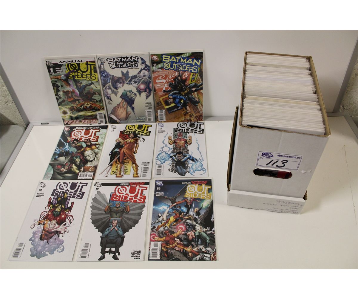 SHORT BOX OF MODERN BACK ISSUES INCLUDING BATMAN AND THE OUTSIDERS, CABLE, JSA AND MORE. HIGH GRADE.
