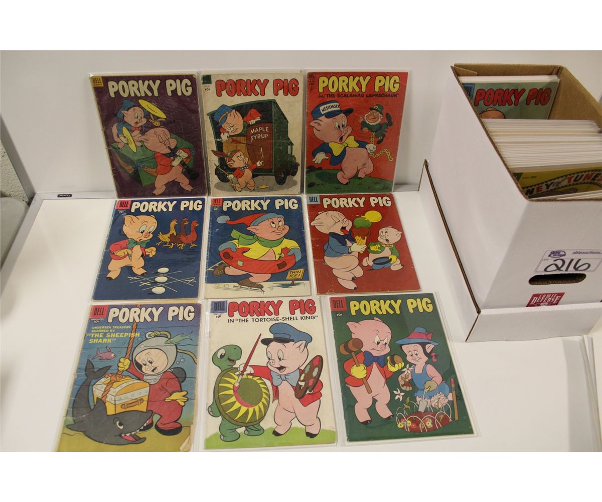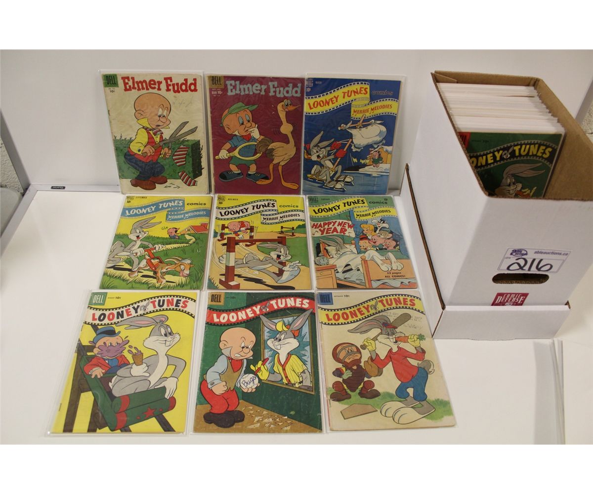 SHORT BOX OF MOSTLY DELL 10 CENT LOONIE TUNES. INCLUDES DAFFY, PORKY PIG AND LOONIE TUNES COVERS. LOW-MID GRADE AVERAGE