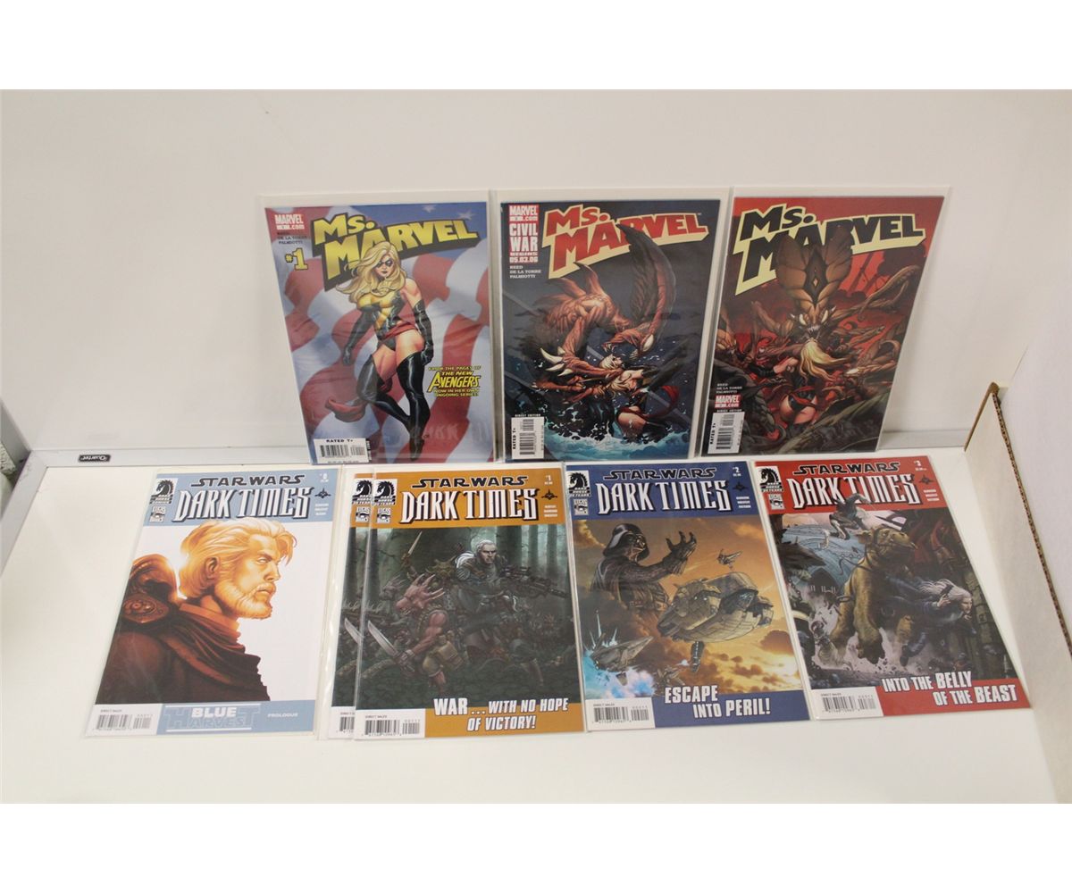 SHORT BOX OF RECENT BACK ISSUES INCLUDING MS. MARVEL, SECRET INVASION, STAR WARS ETC. HIGH GRADE AVERAGE.