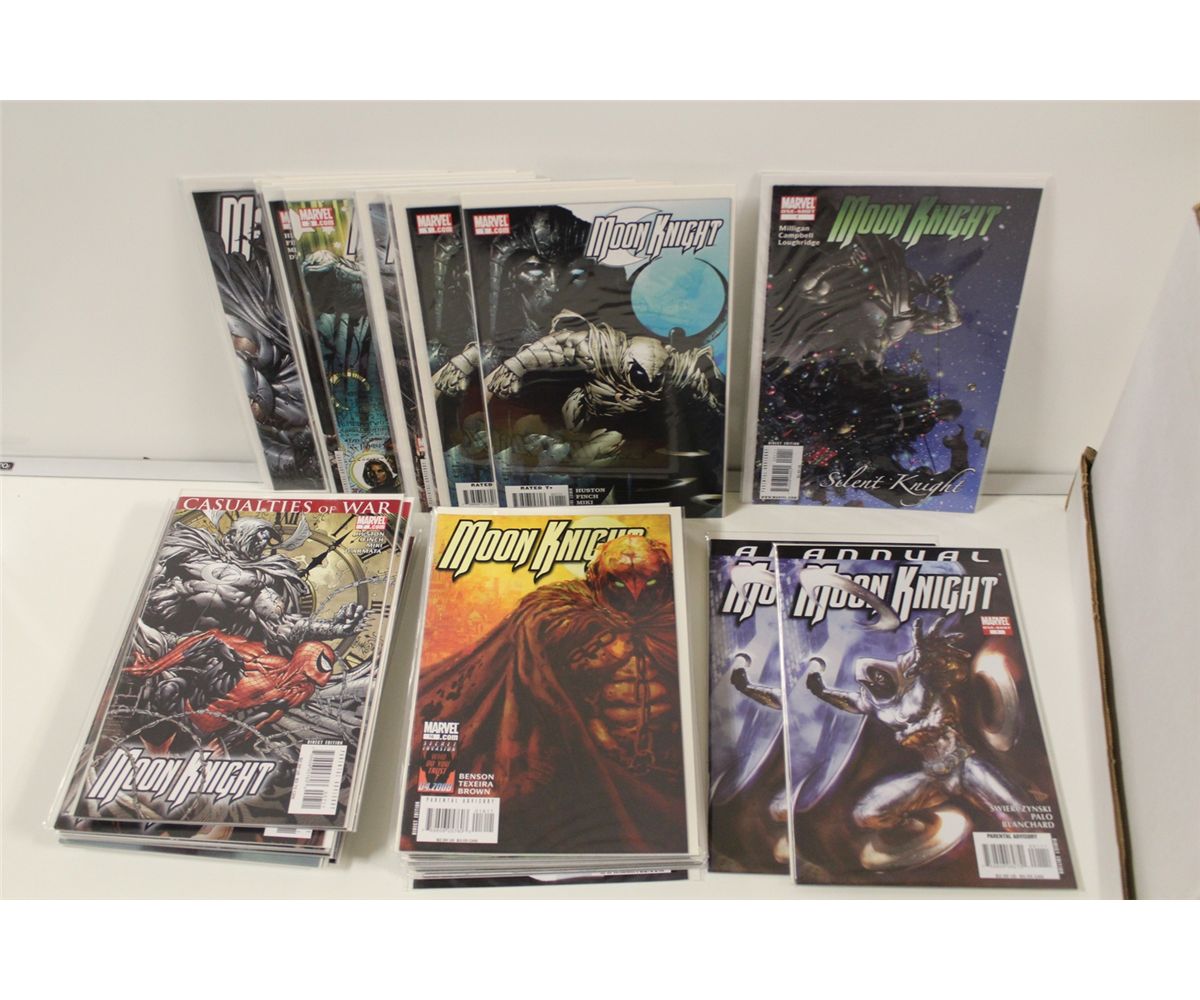 SHORT BOX OF RECENT MODERN RUNS INCLUDING: WONDER WOMAN #1-32, MOON KNIGHT #1-30, GHOST RIDER #14-23 AND X-FACTOR #1-36. HIGH GRADE