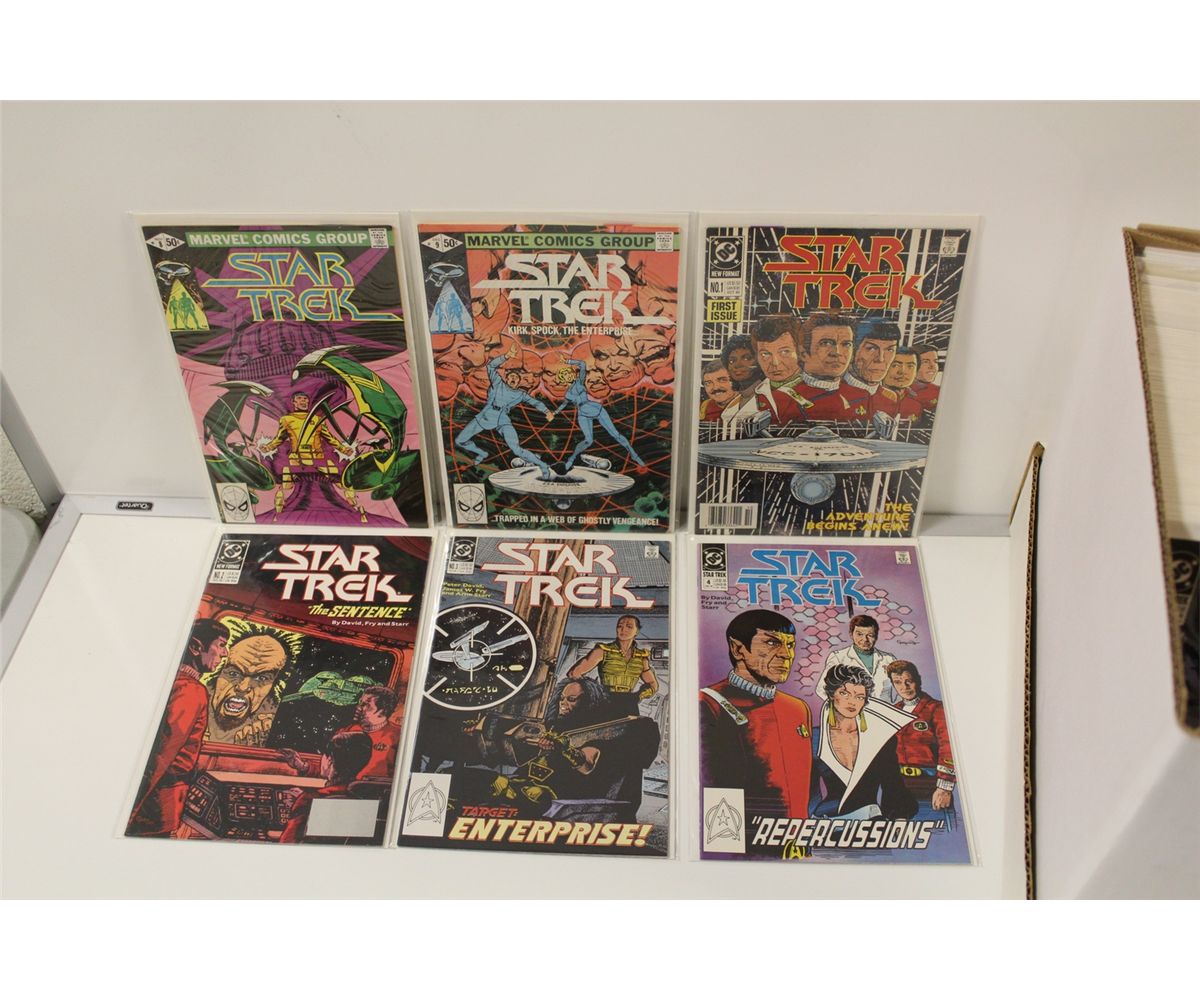 SHORT BOX OF STAR TREK MARVEL #1-9 (MISSING #7) DC #1-46 SOME GOLD KEY AND MORE. NICE RUNS IN MID-HIGH GRADE