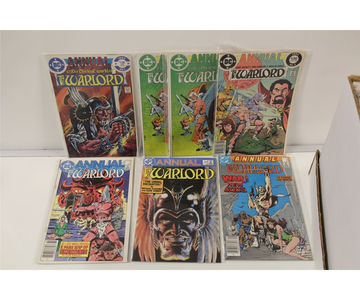 SHORT BOX OF WARLORD #1-78 WITH MULTIPLE #1'S PLUS ANNUALS #1-6. MID-HIGH TO HIGH GRADE AVERAGE.