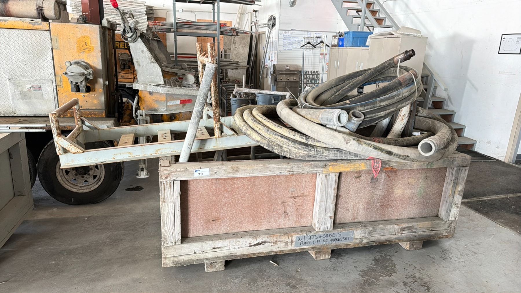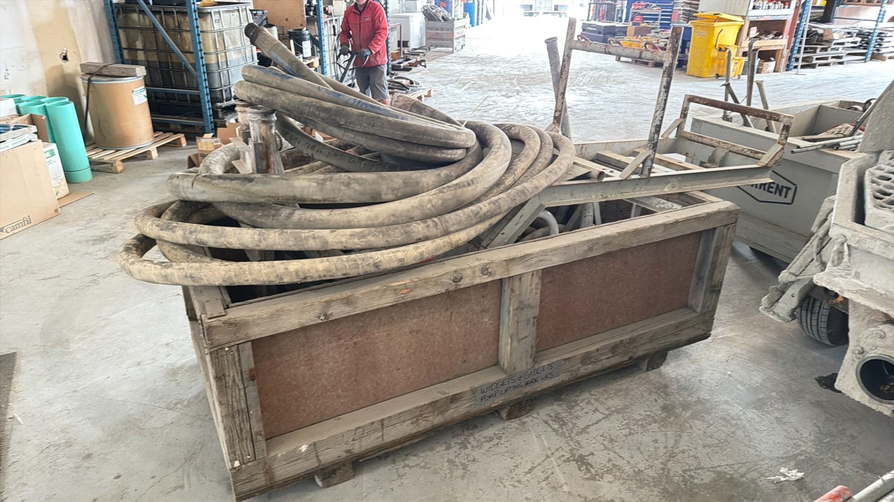 SHOTCRETE HEAVY DUTY METAL INDUSTRIAL HOSE JIG WITH HOSES IN WOODEN PALLET CRATE