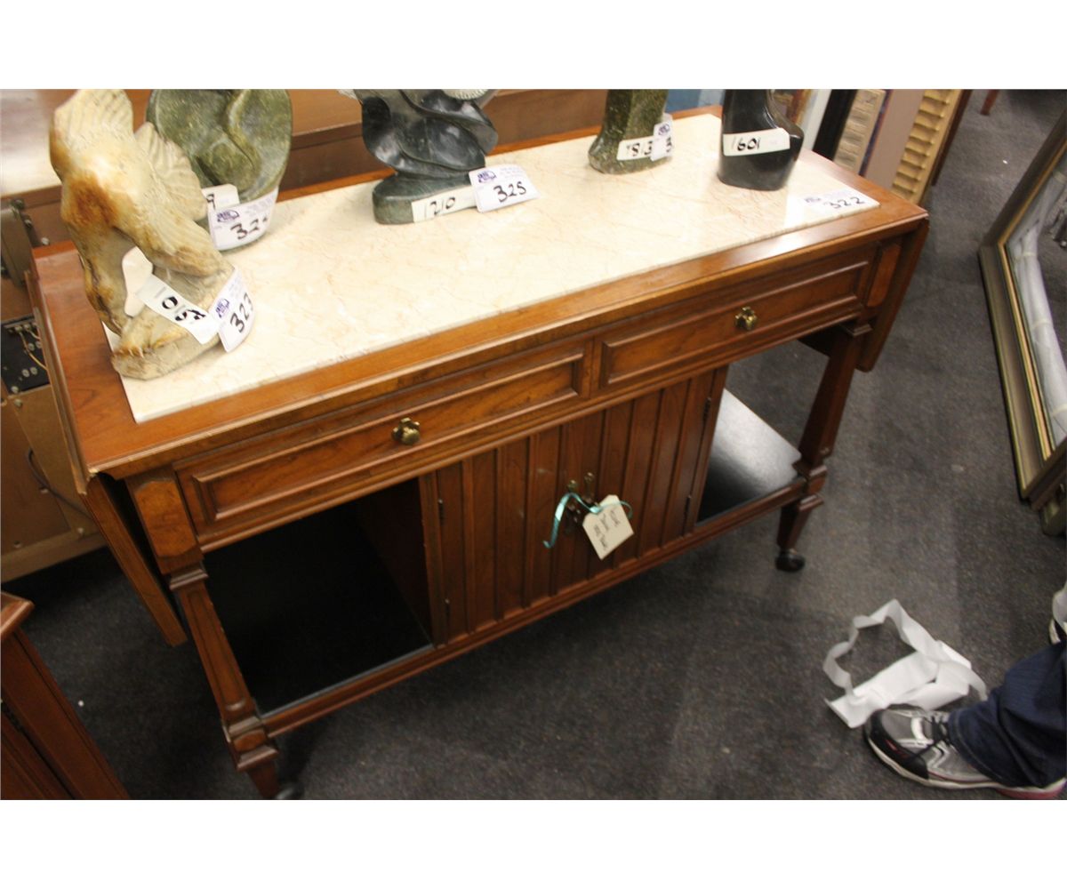 SIDEBOARD WITH MARBLE TOP ON CASTERS - DROP LEAF SIDES