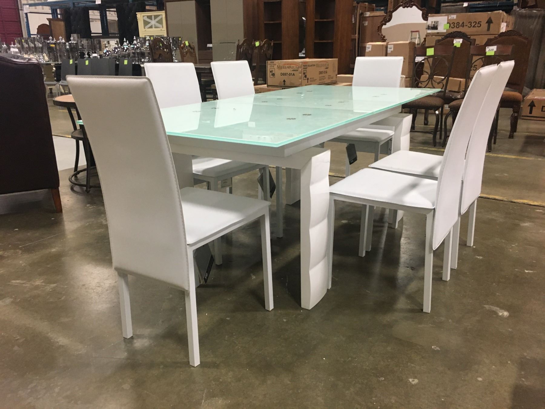 SIGNATURE ASHLEY DESIGN GLASS TOP EXTENDABLE DINING TABLE WITH 6 CHAIRS (BOXED)