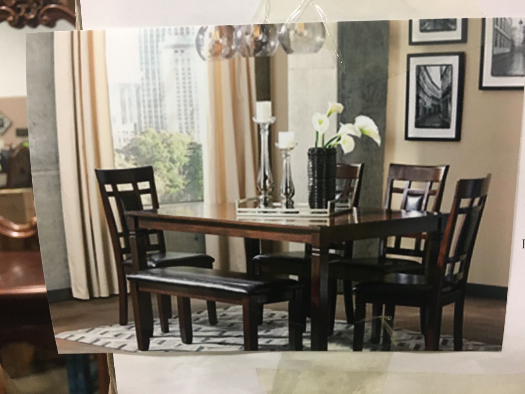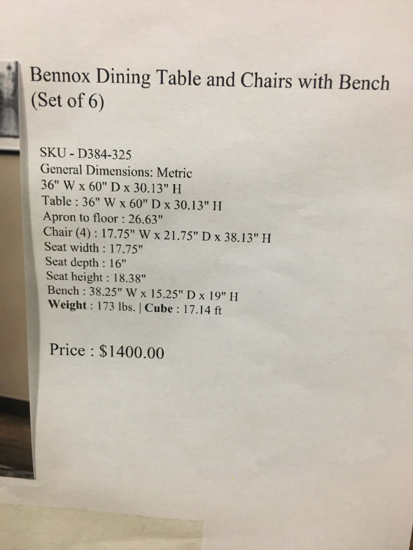 SIGNATURE DESIGN BY ASHLEY 6 PC.DINING TABLE, CHAIRS & BENCH SET (BOXED)