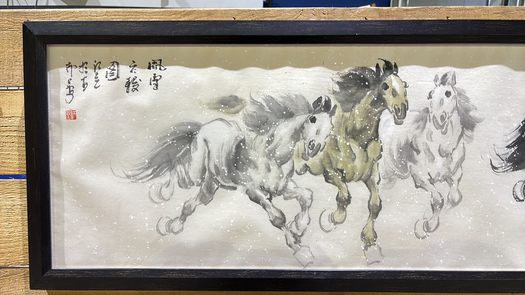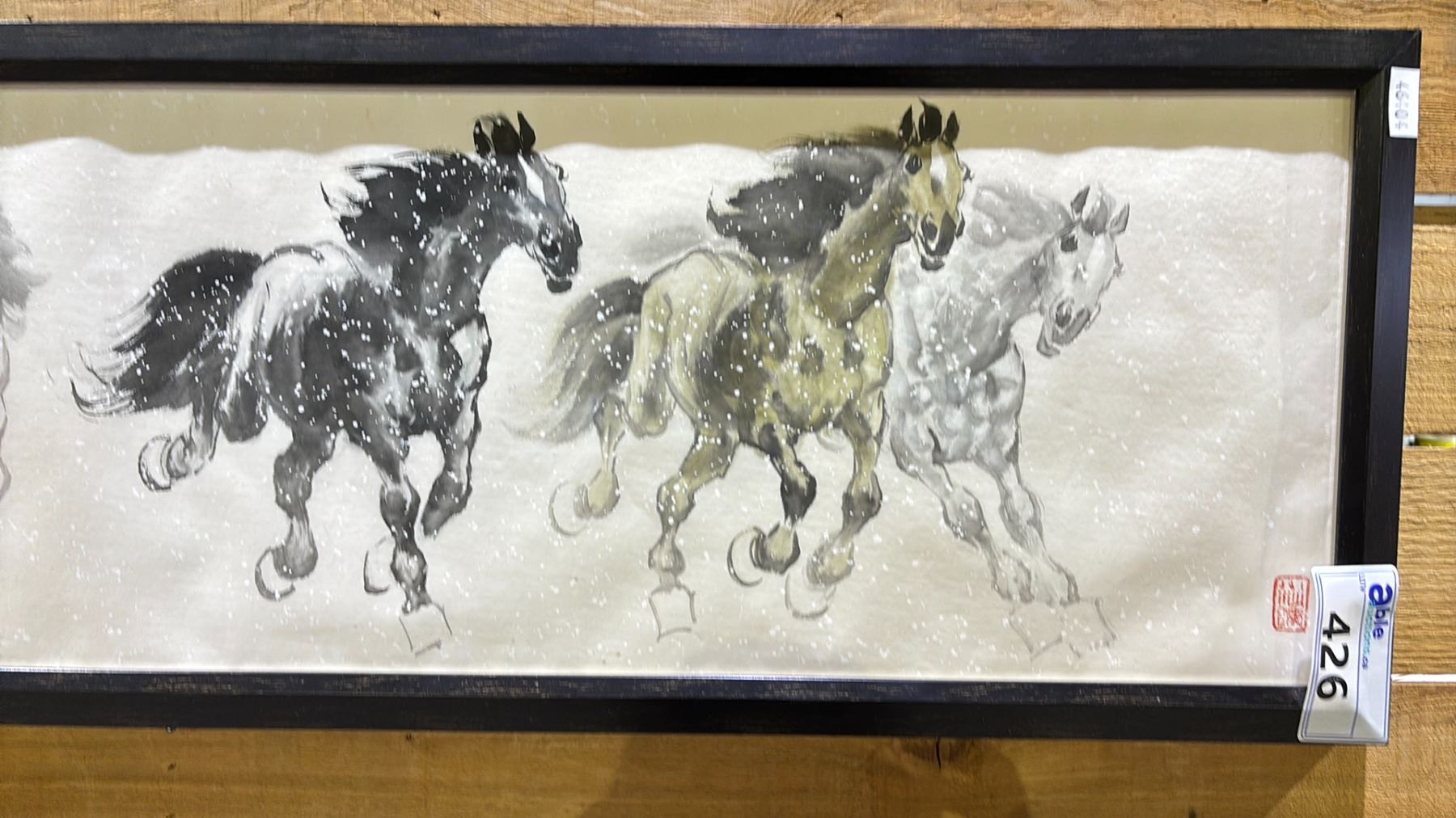 SIGNED FRAMED RUNNING HORSES 56" X 16"