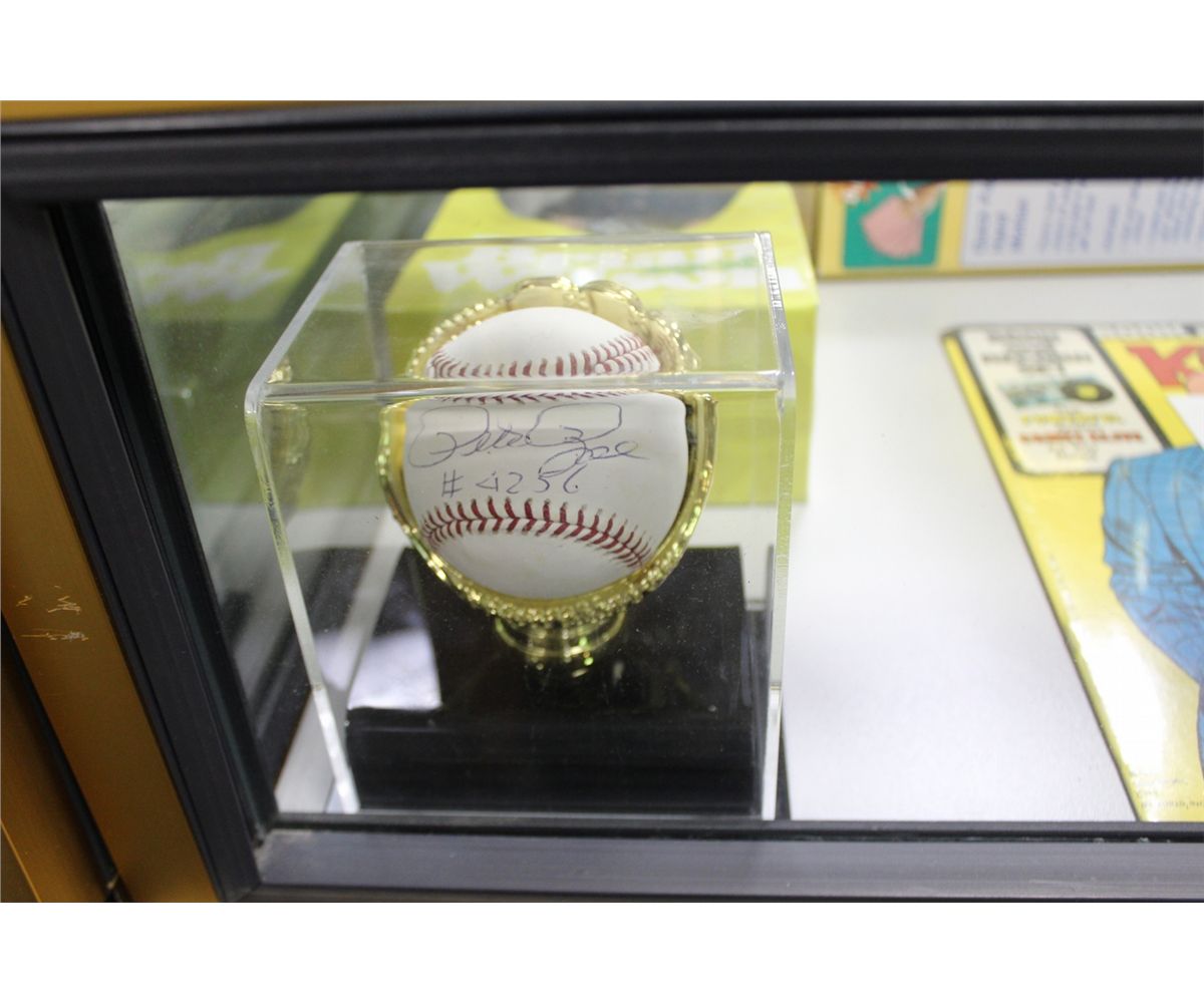 SIGNED PETE ROSE BASEBALL IN SOUVENIR CASE