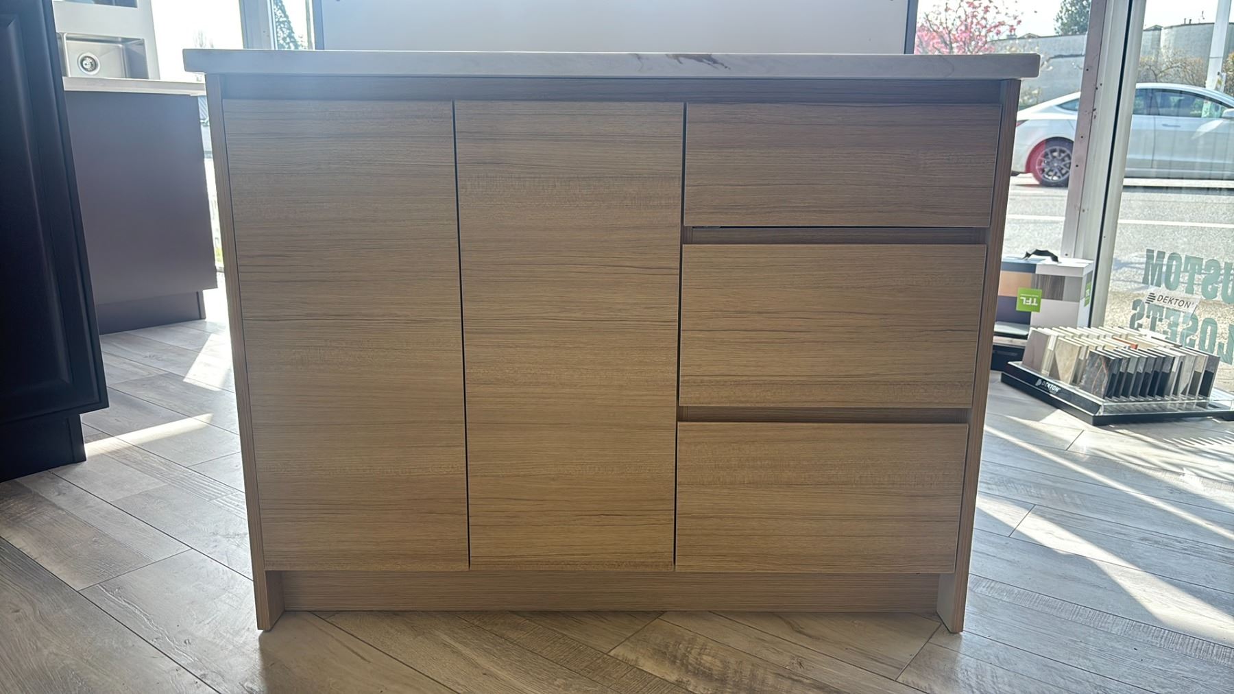 SILESTONE STONE TOP 3 DRAWER W/SIDE CUPBOARD CABINET *APPROX. 43" ACROSS X 23" WIDE X 33" HIGH*