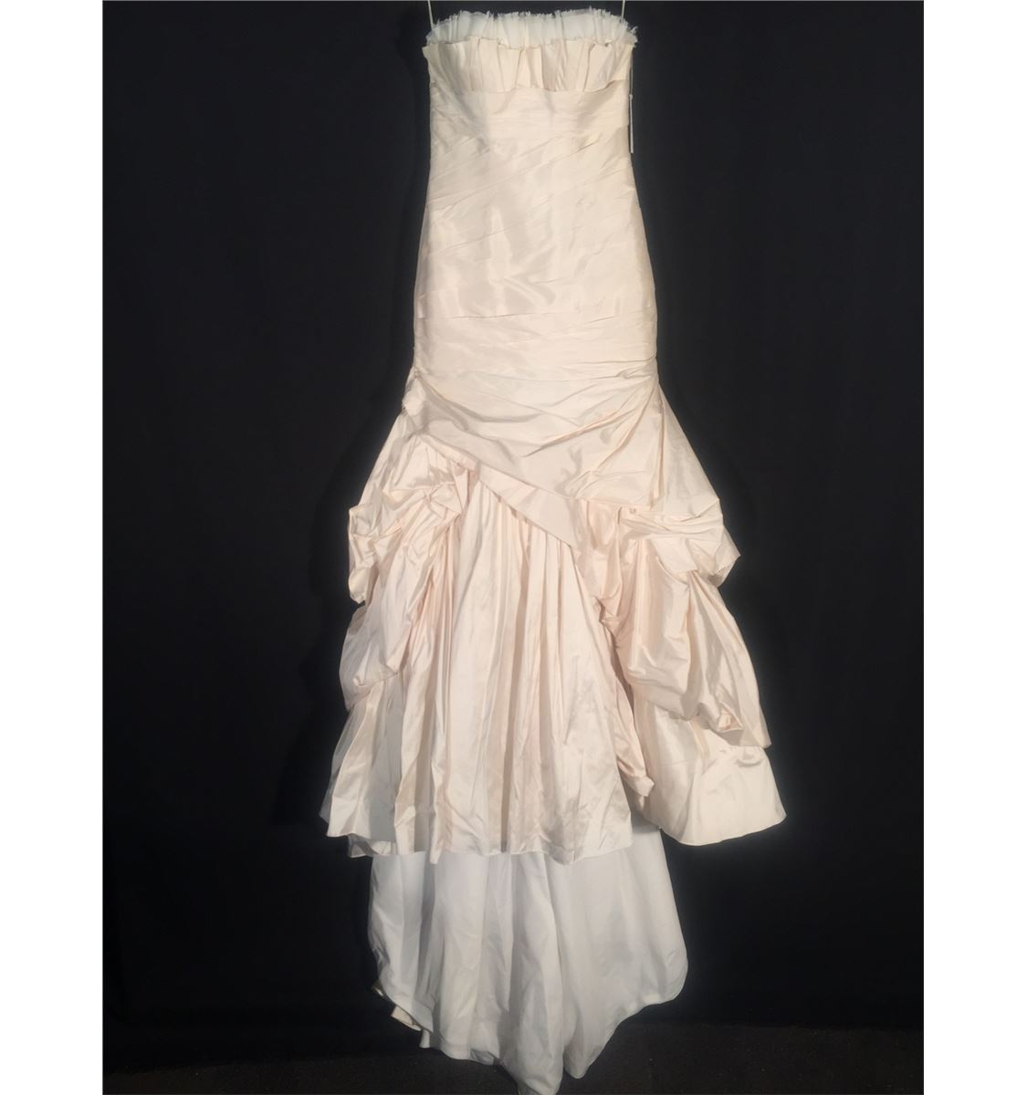 SILK IVORY PLEATED TOP WEDDING DRESS W/ TRAIN, SIZE 8