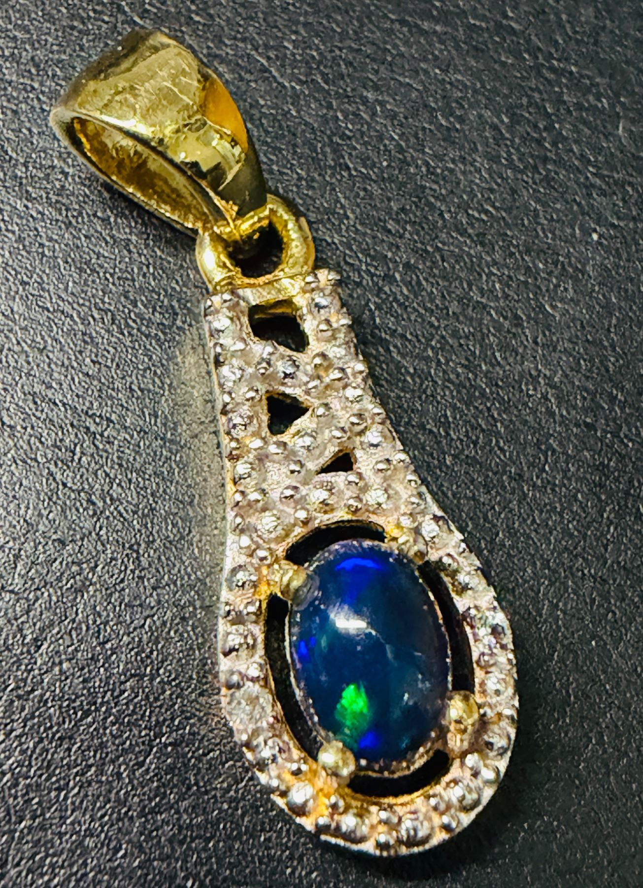 SILVER (1.54G) BLACK OPAL (ENHANCED) (0.45CT) CZ (0.25CT) PENDANT SUGGESTED RETAIL VALUE $200