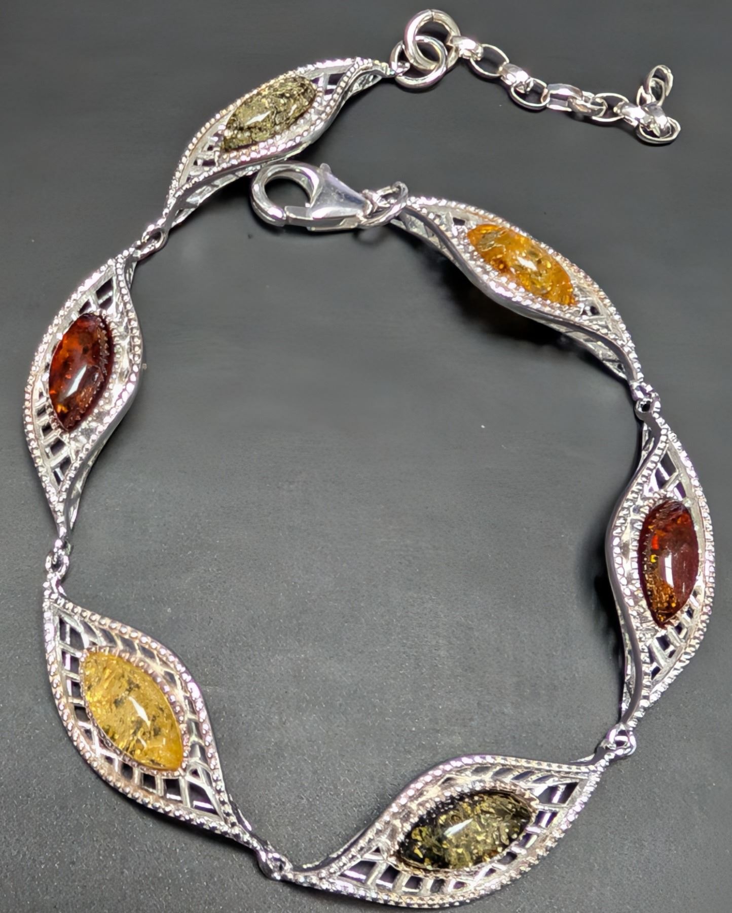 SILVER(10.36G), AMBER BRACELET 7-8", SUGGESTED RETAIL VALUE $300