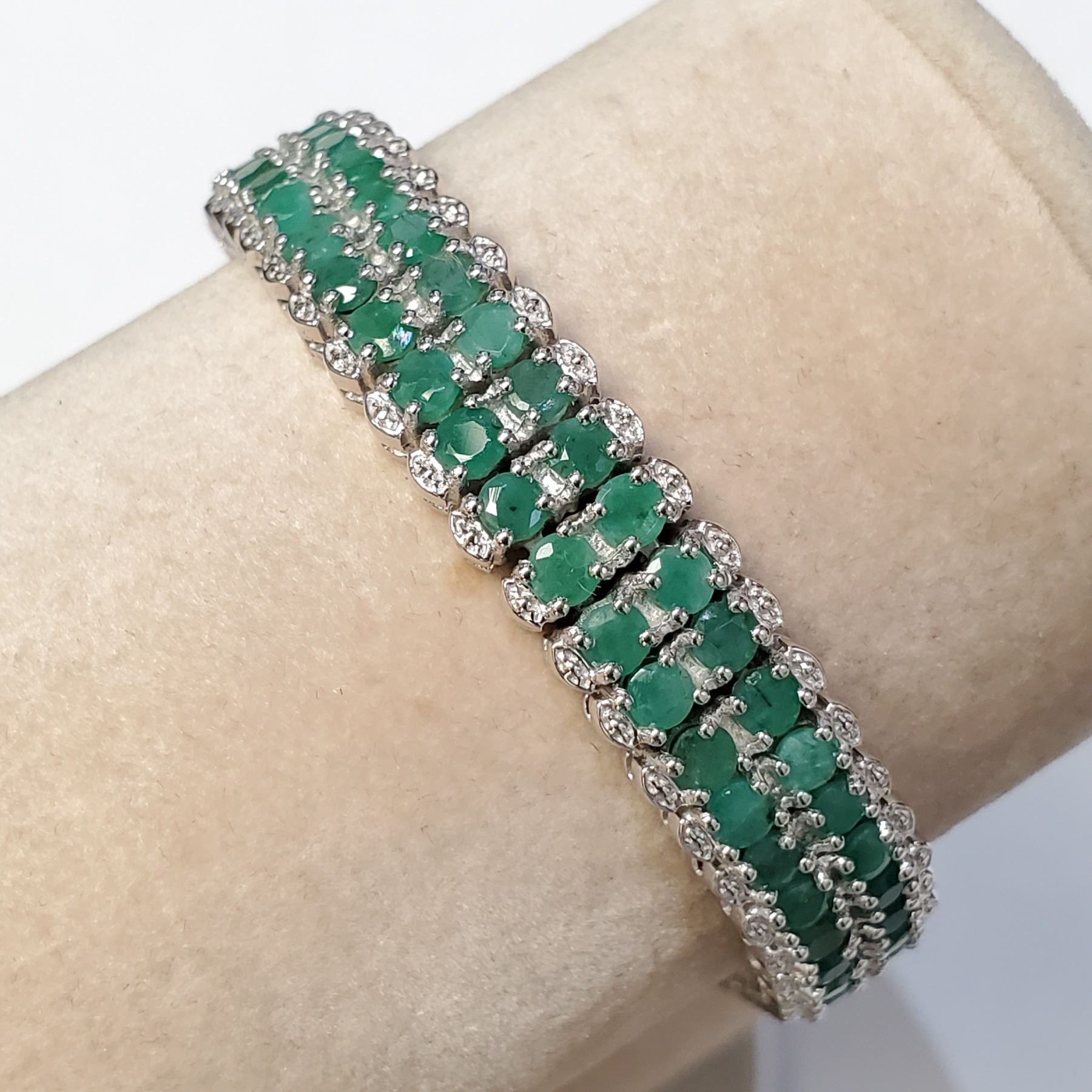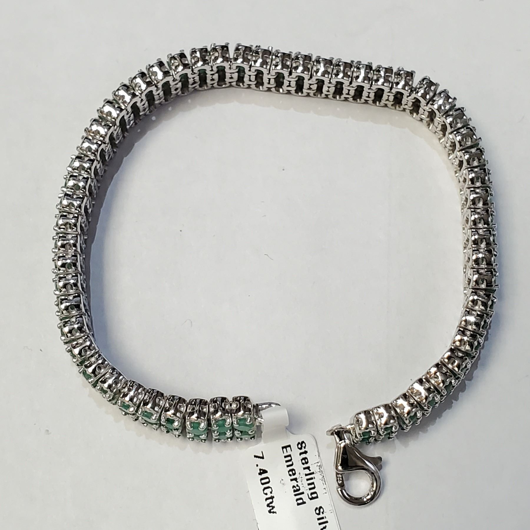 SILVER 120 EMERALDS(7.4CT) BRACELET 6.25"