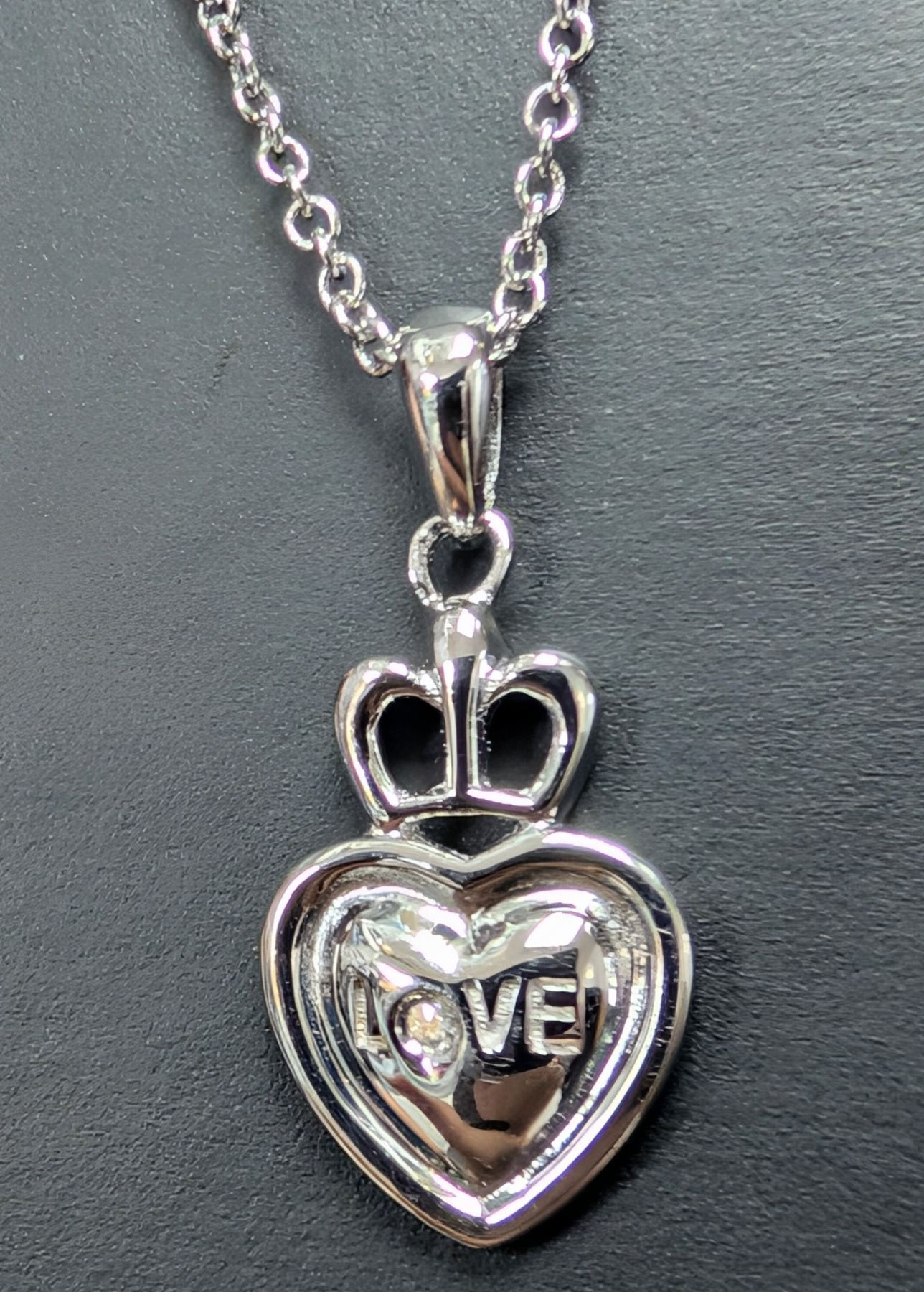 SILVER(2.53G), GENUINE DIAMOND (0.01CT) NECKLACE 15"